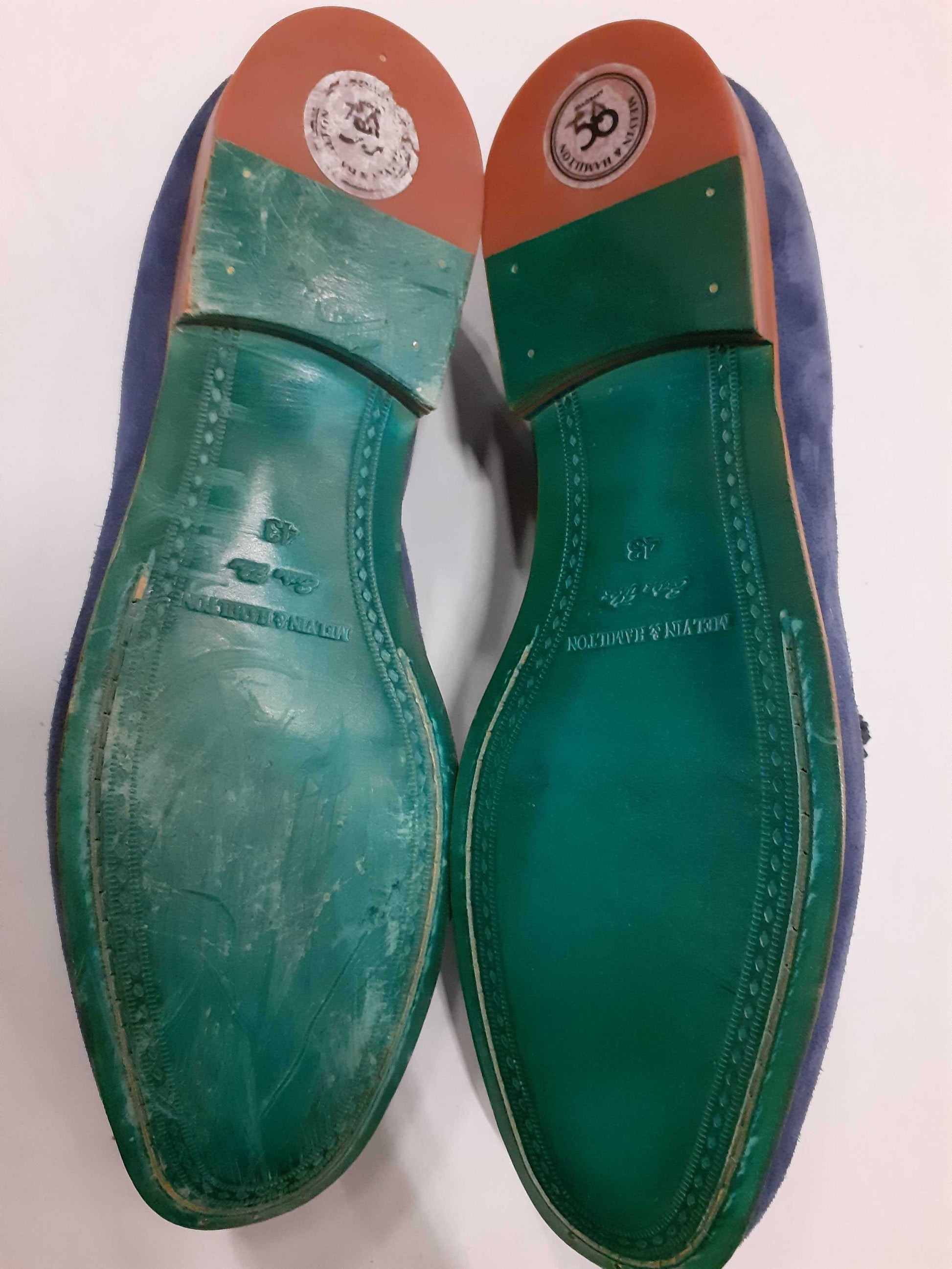 Rechte Sohle stark abgenutzt, linker Schuh leicht abgenutzt Dieses Produkt wird direkt von Melvin & Hamilton verkauft.