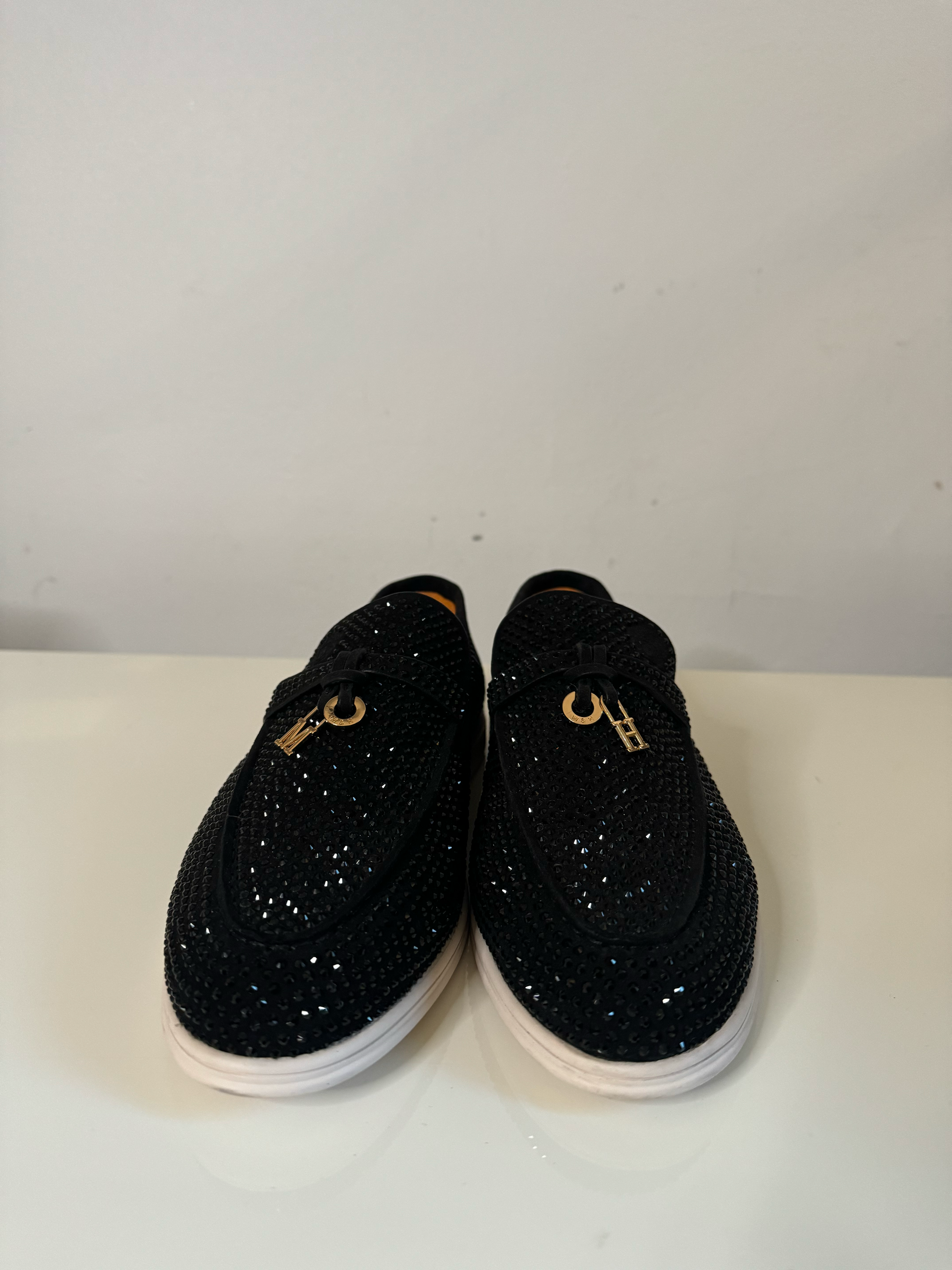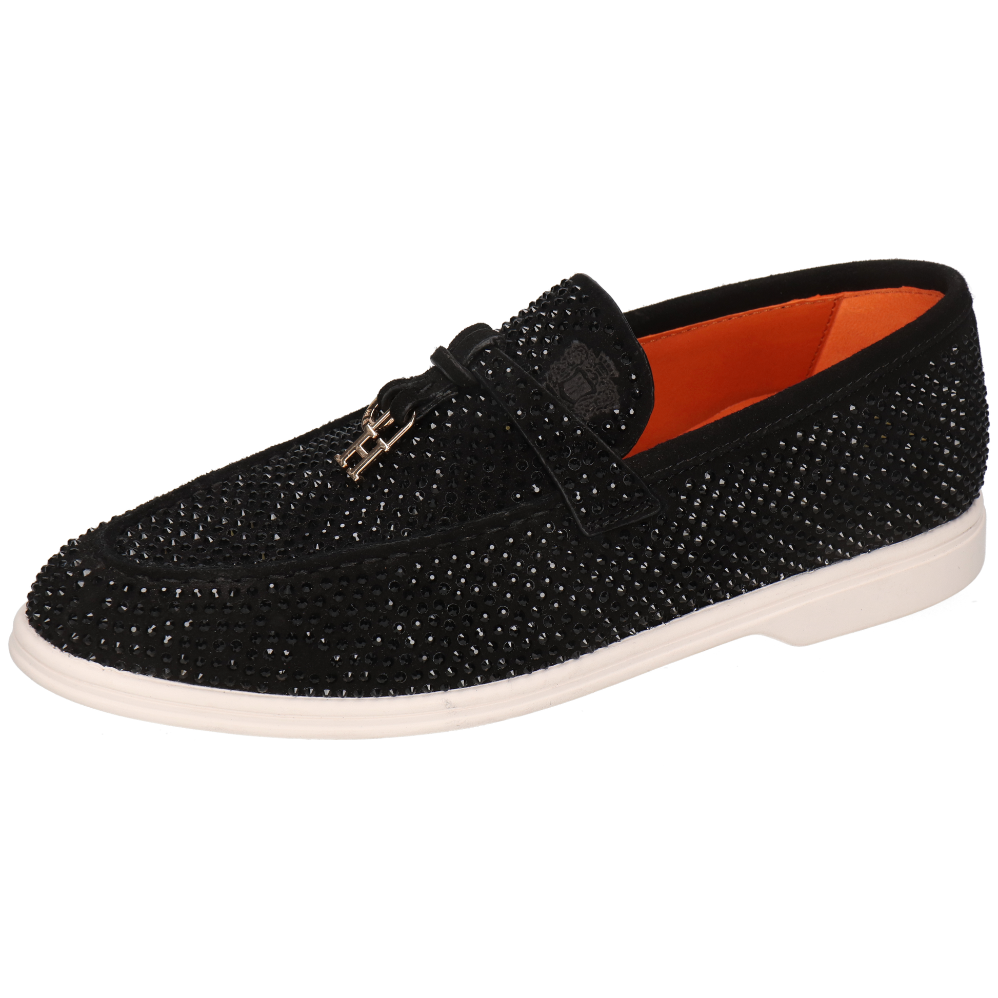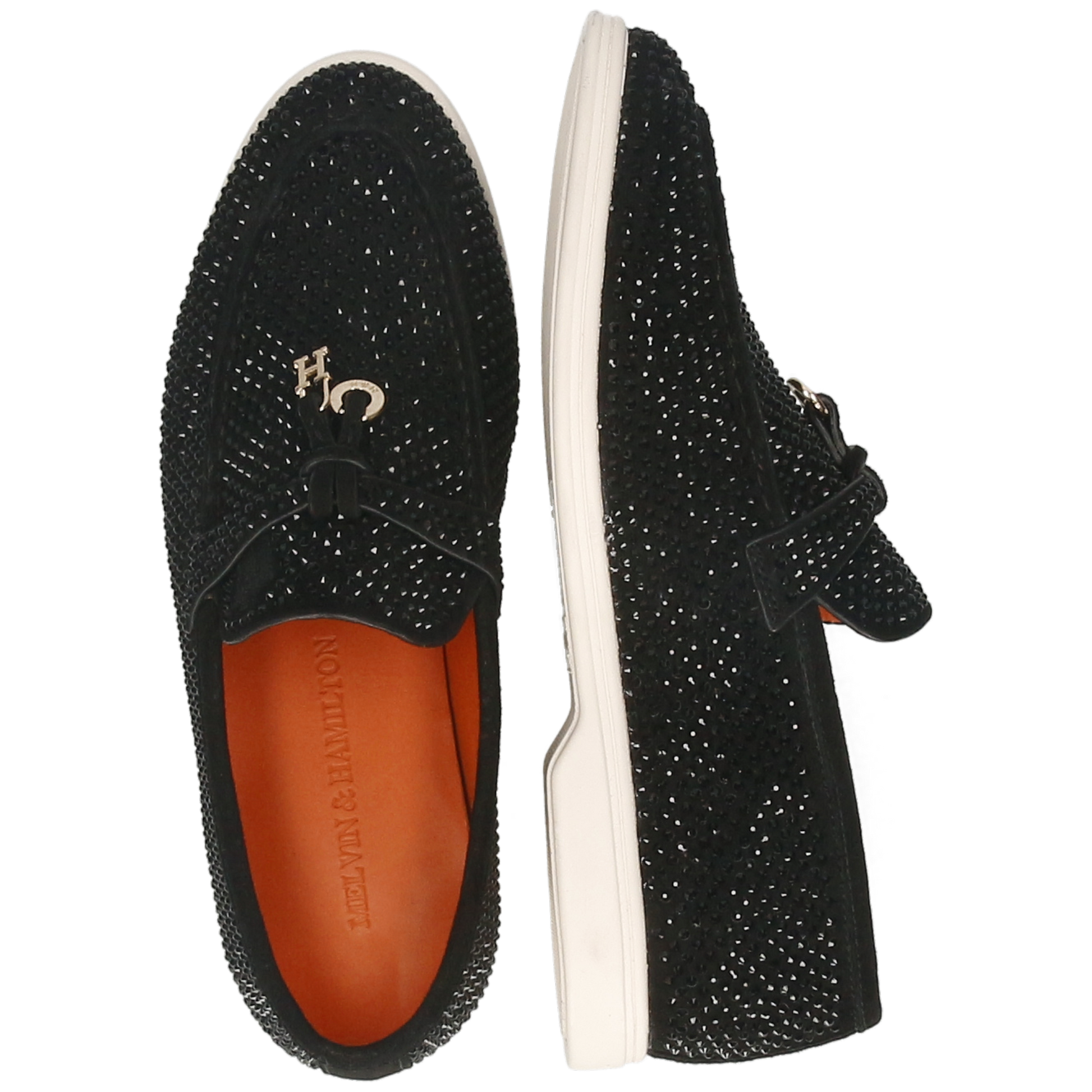 Die Adley 3 Mokassins aus schwarzem Veloursleder verkörpern die ganze Eleganz der ikonischen Adley-Kollektion von Melvin & Hamilton, einer unserer beliebtesten und bekanntesten Linien. Mit ihrer klaren Silhouette und dem unkomplizierten Design zum Hineinschlüpfen verleihen diese Schuhe jedem Anlass eine natürliche Eleganz. Dieses Modell zeichnet sich durch Strassverzierungen aus, die diesem zeitlosen Klassiker einen glamourösen und funkelnden Akzent verleihen. Ein dekorativer M&H Mini-Charm auf dem vorderen Riemen rundet das einzigartige Erscheinungsbild ab, während die leichte Gummisohle den ganzen Tag über Komfort garantiert. Vielseitig und elegant passen die Adley 3 Mokassins sowohl zu einer lässigen Jeans als auch zum Bürooutfit und sind damit ein unverzichtbares Stück, um Komfort und Stil zu verbinden.