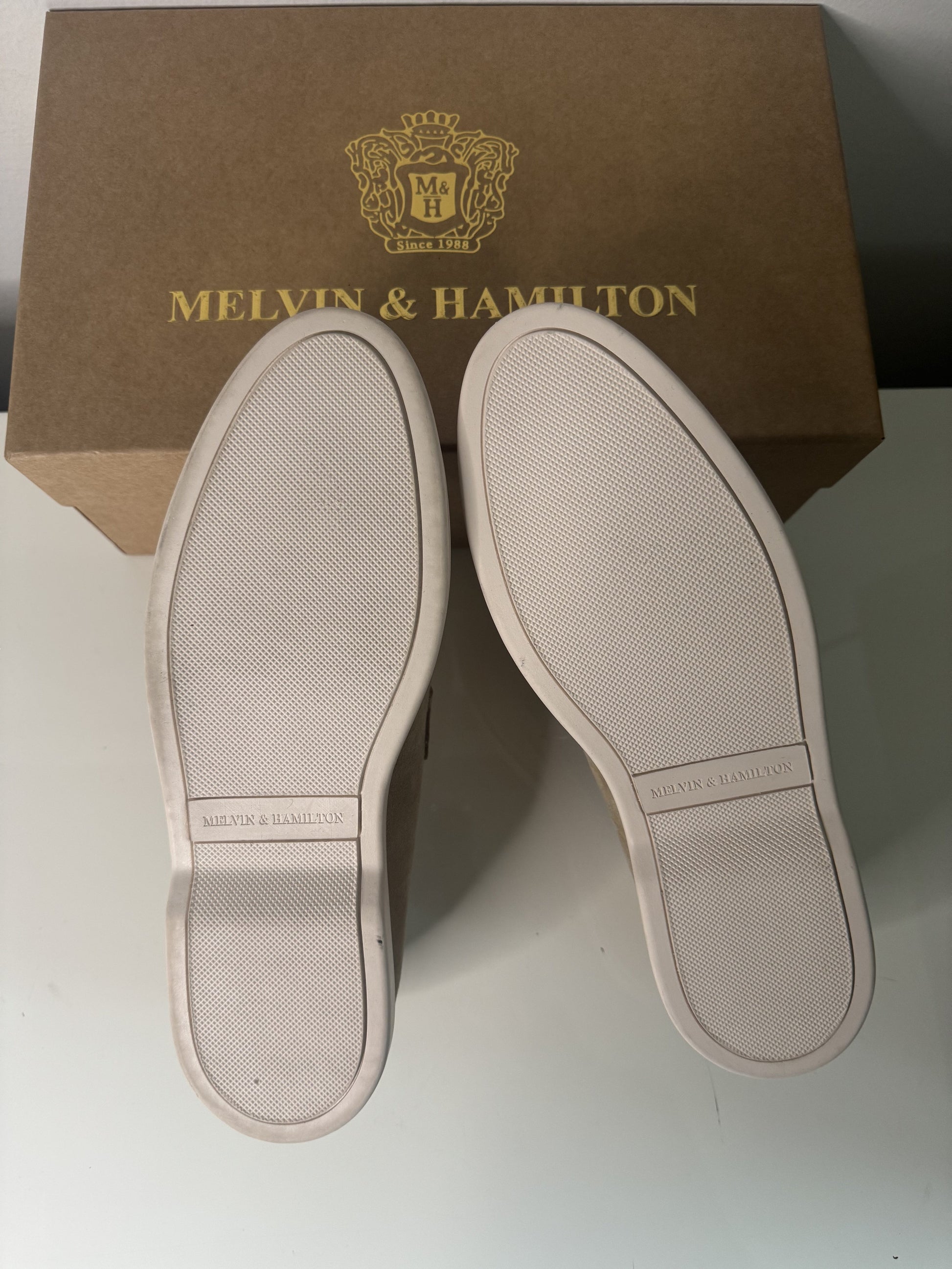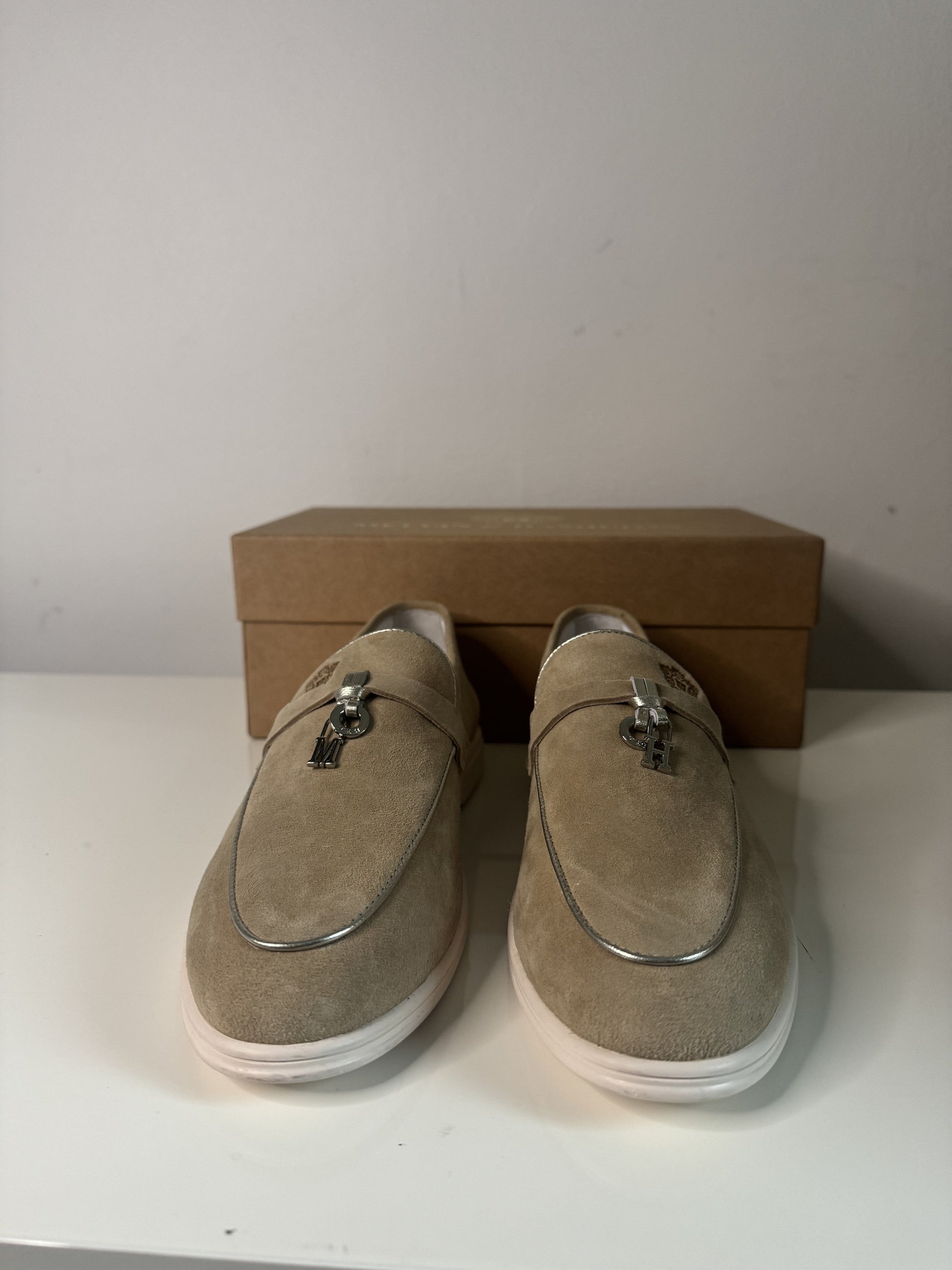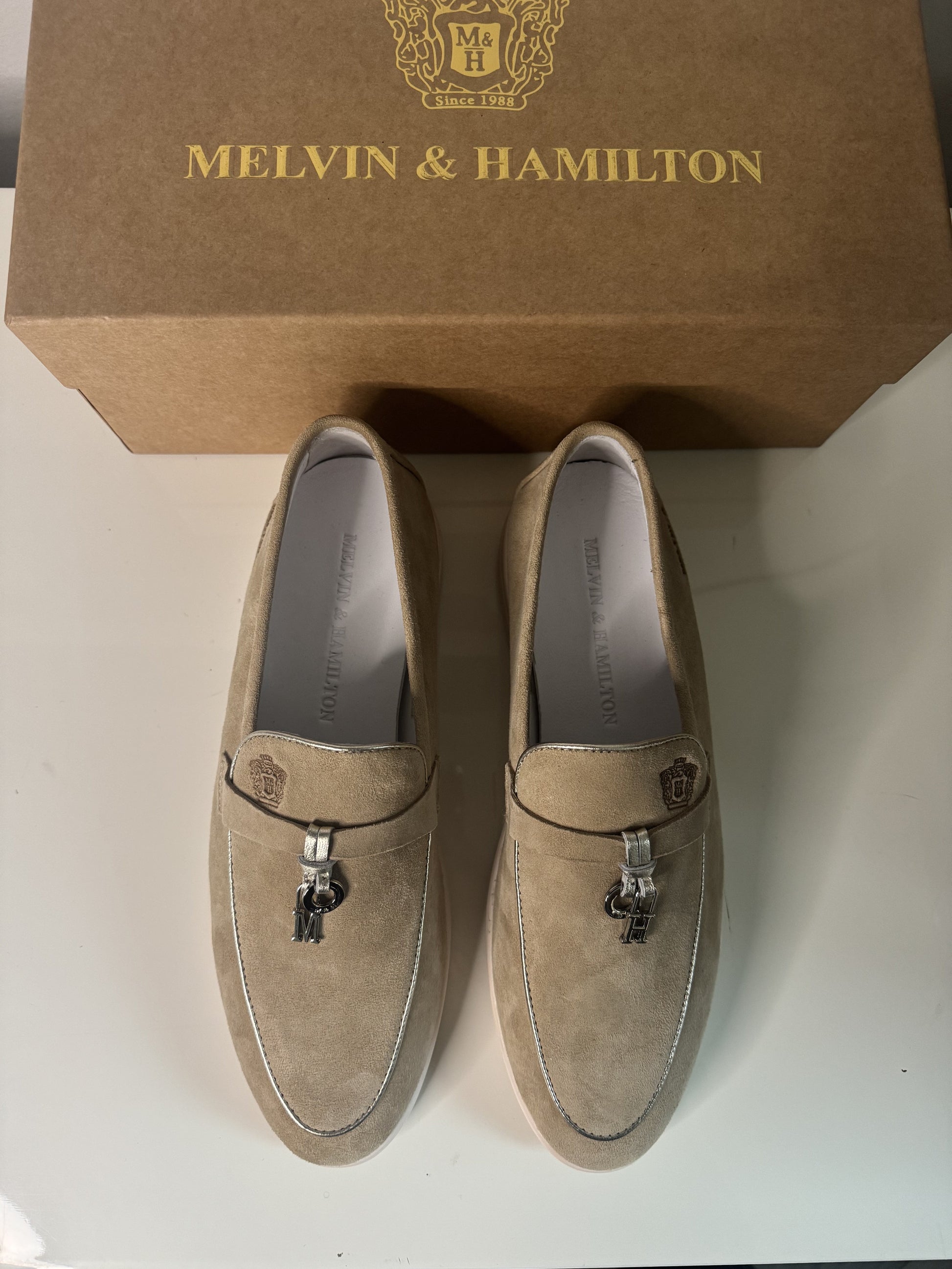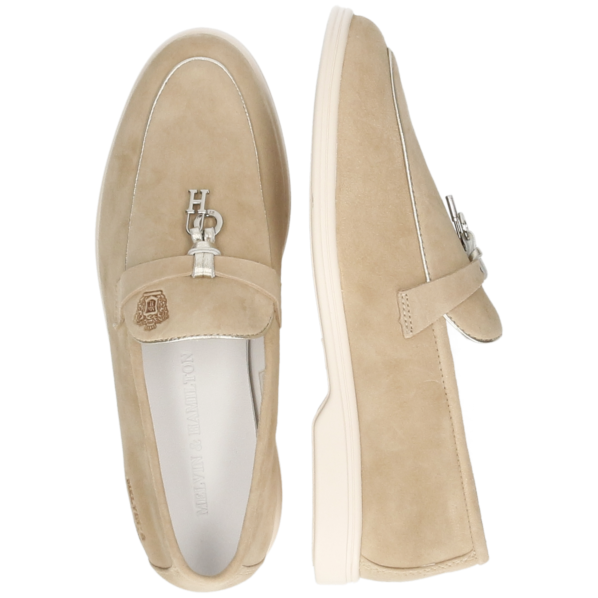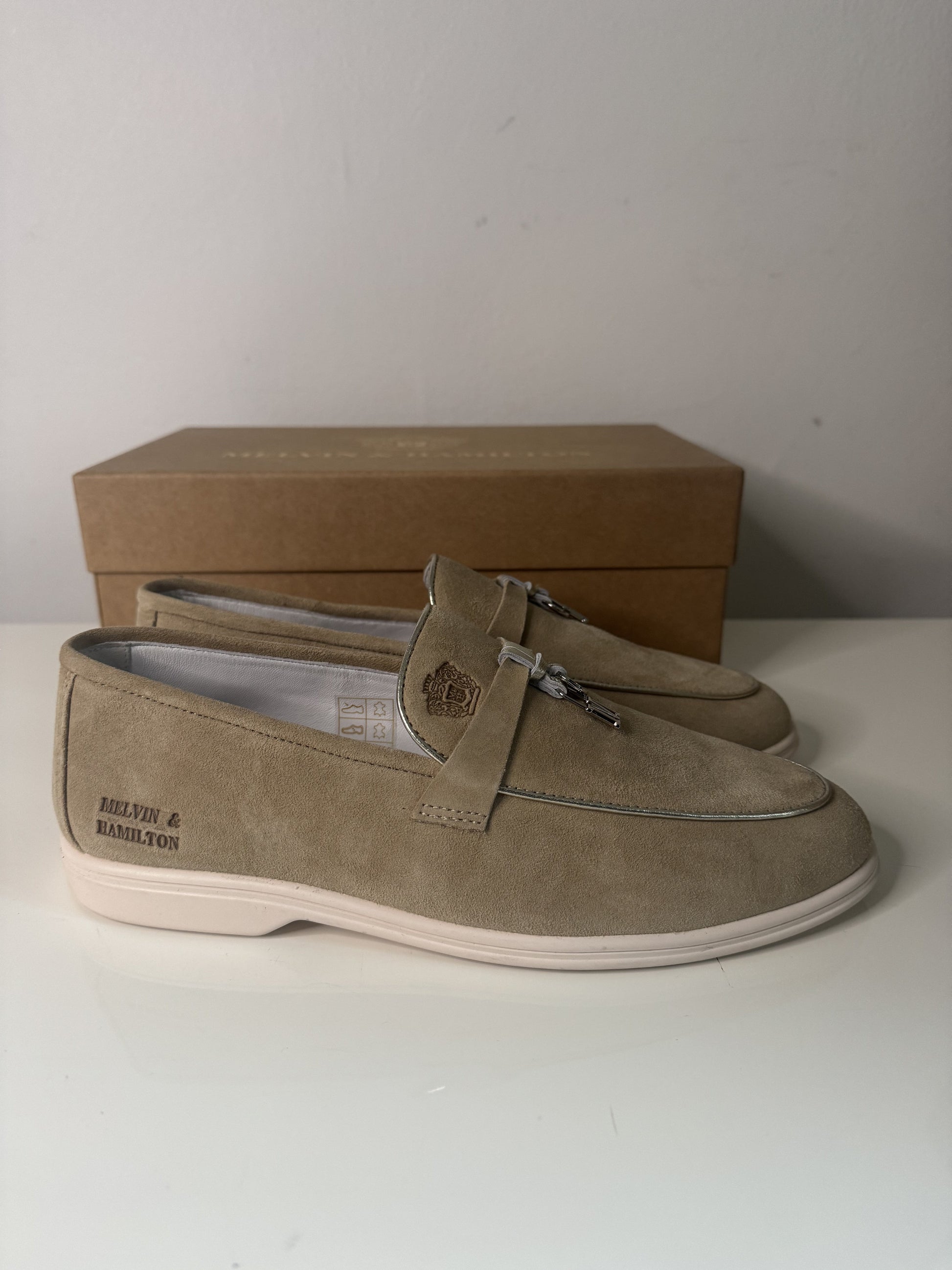 Diese bequemen und lässigen Mokassins aus weichem, beigem Veloursleder spiegeln die Adley-Kollektion von Melvin & Hamilton wider, eines unserer ikonischsten und beliebtesten Modelle. Mit ihrem leicht anzuziehenden Design, der Flexibilität und der leichten Gummisohle sind die vielseitigen Adley 24 Mokassins mit dekorativen M&H Mini-Anhängern versehen. Perfekt für Frühlingsspaziergänge, Büroalltag, Strandspaziergänge oder Stadtbummel verbinden diese Mokassins zeitlosen Stil mit dauerhaftem Komfort.