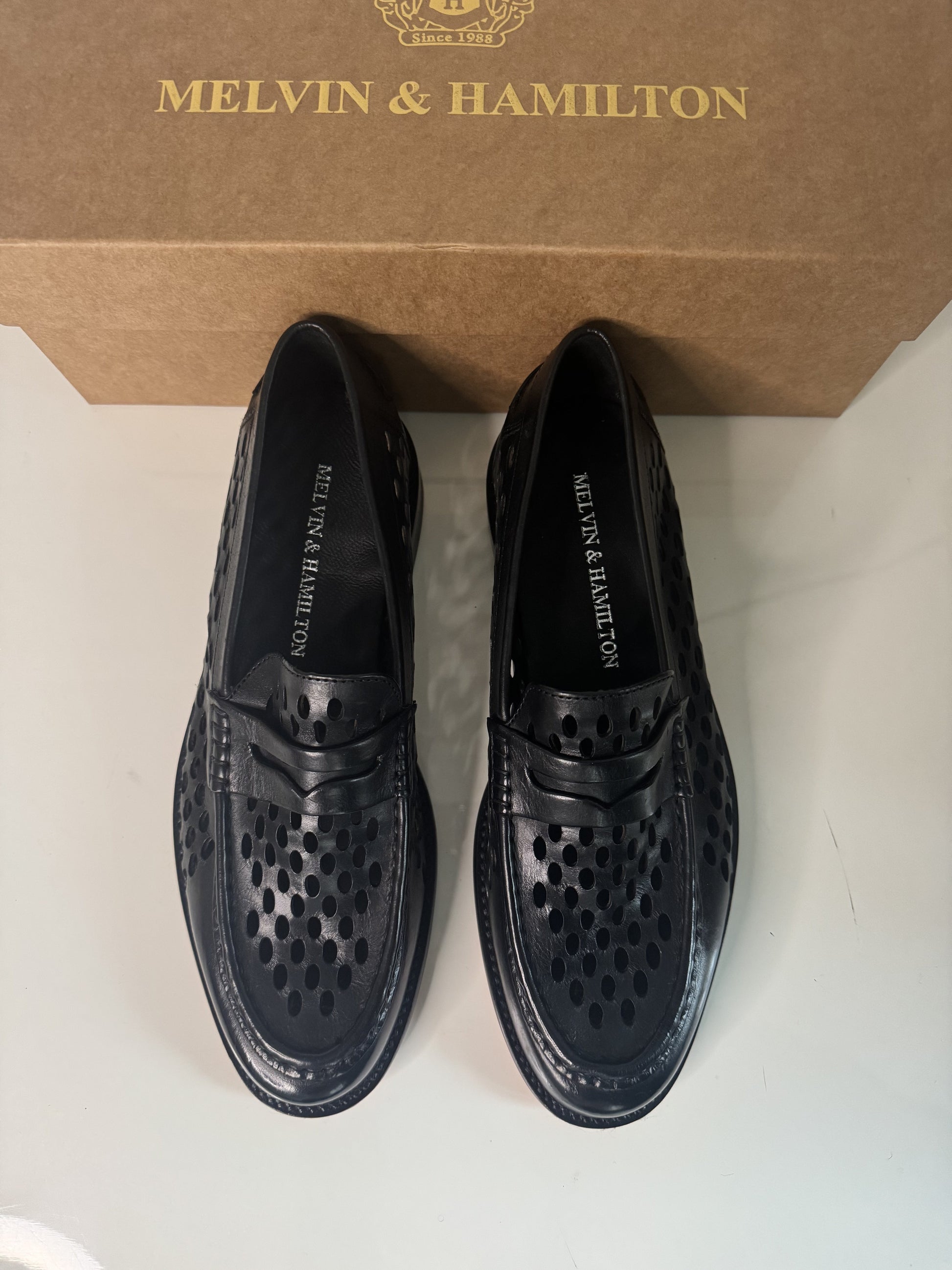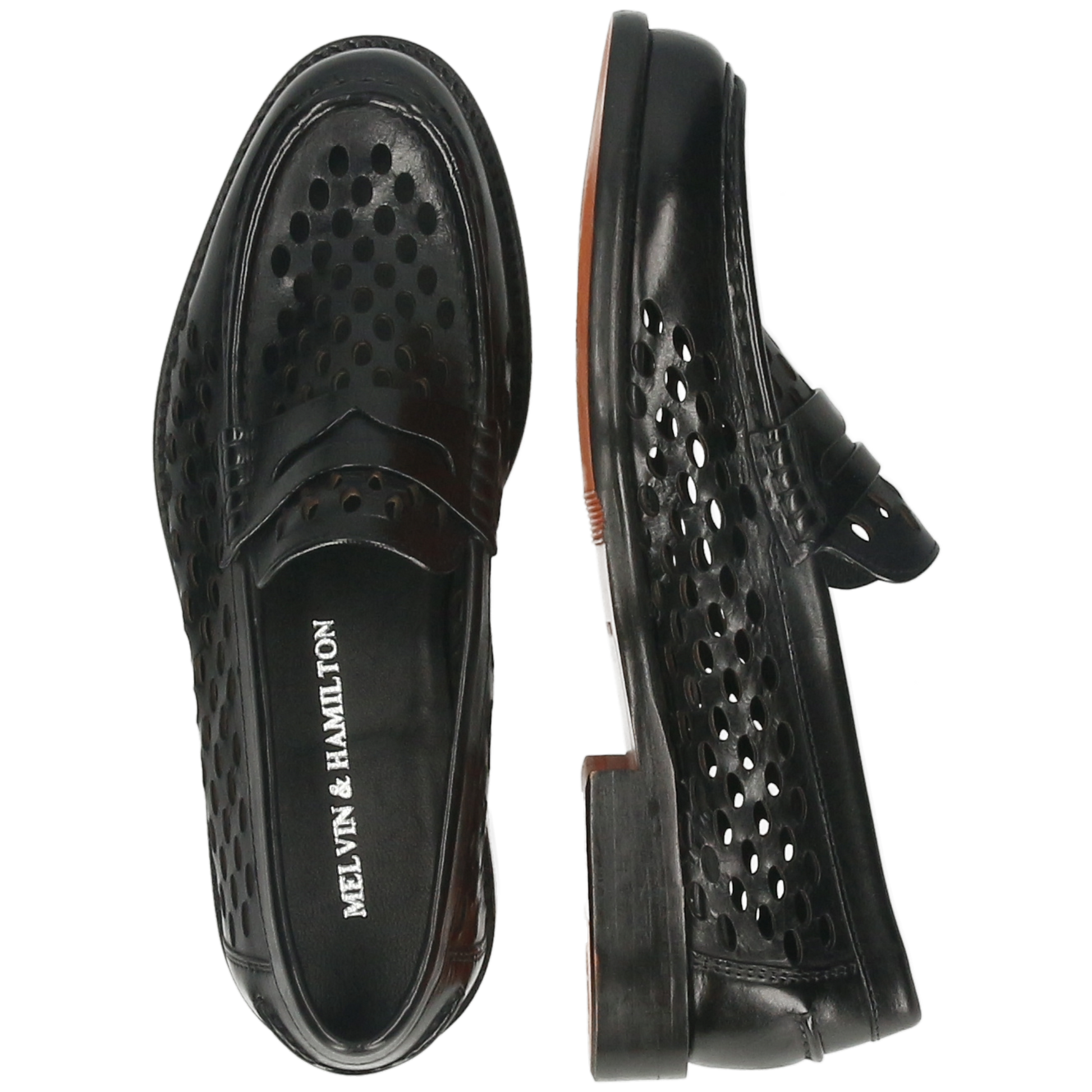 Melvin & Hamilton präsentiert seine Frühjahrs-/Sommerkollektion von Mokassins für Damen. Ob mit Schnalle, Quasten oder schlicht gehalten, Mokassins gibt es in vielen Varianten. Hier sind die Merkmale unseres Modells aus Leder Gianna 23. Wählen Sie diese Mokassins mit rundem Zehenbereich aus schwarzem Rindsleder für einen lässigen und entspannten Look. Denn dieser Mokassin mit seiner Sohle aus Leder und orangefarbenem Gummi ist nicht nur für Business-Outfits geeignet, sondern praktisch für jede Gelegenheit! Und in der Frühlingssaison ist der Komfort dieses flachen Modells besonders willkommen.