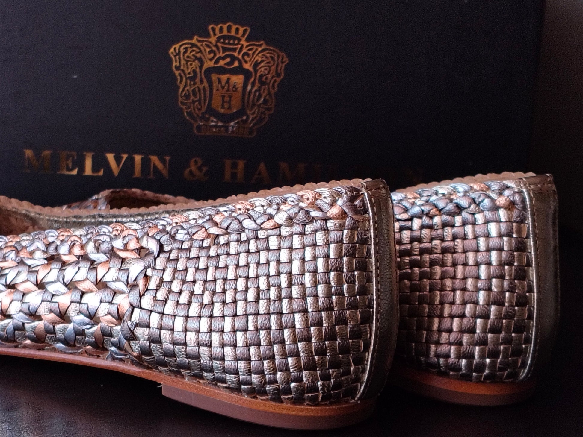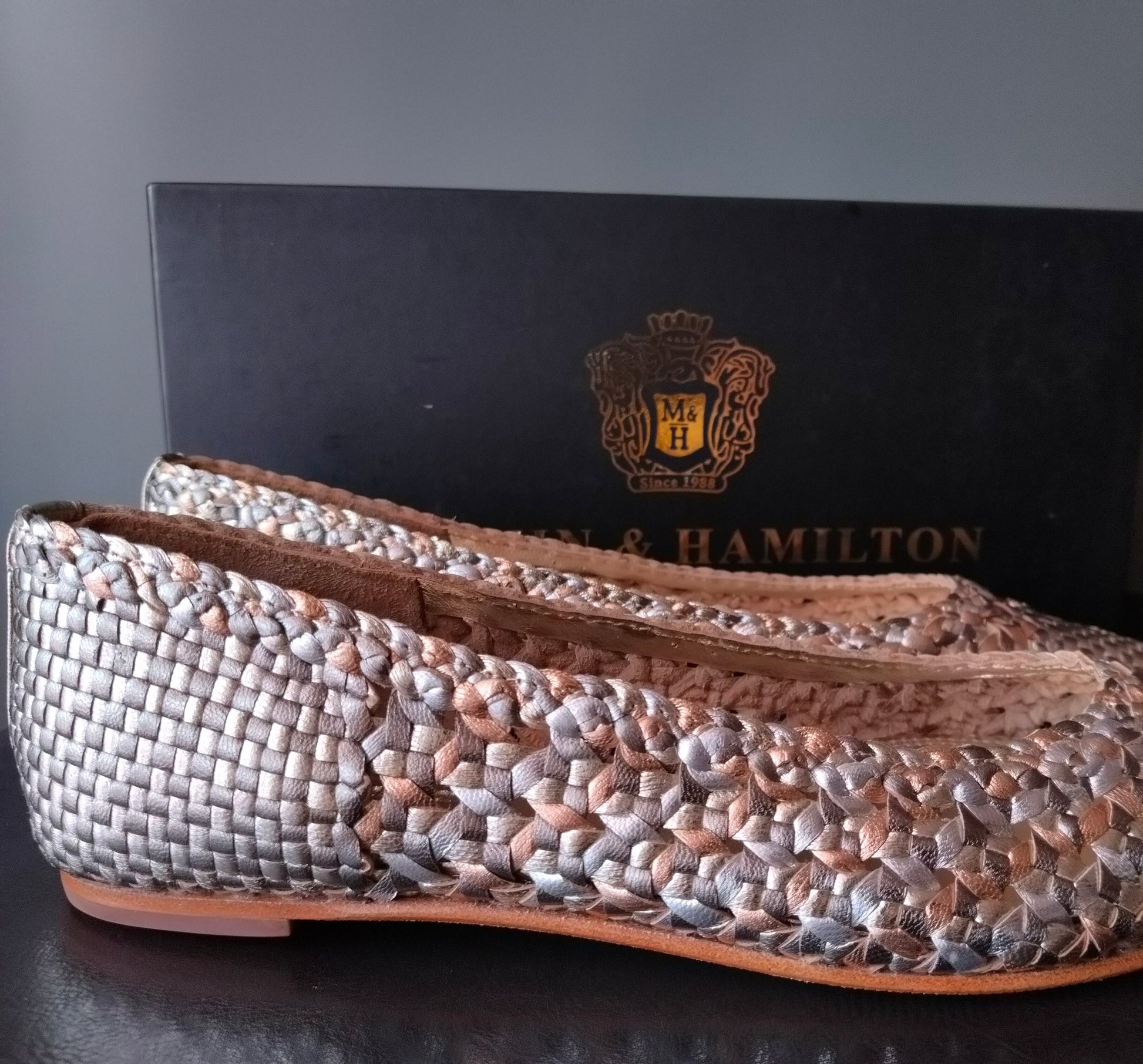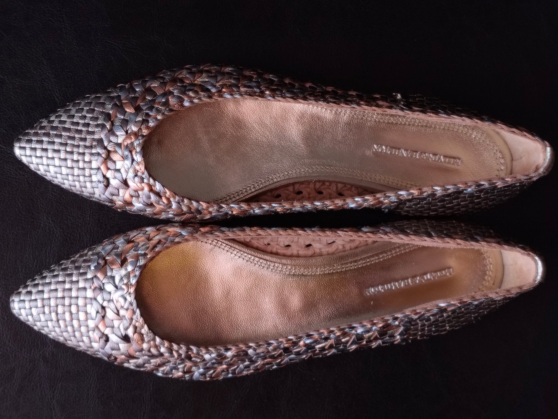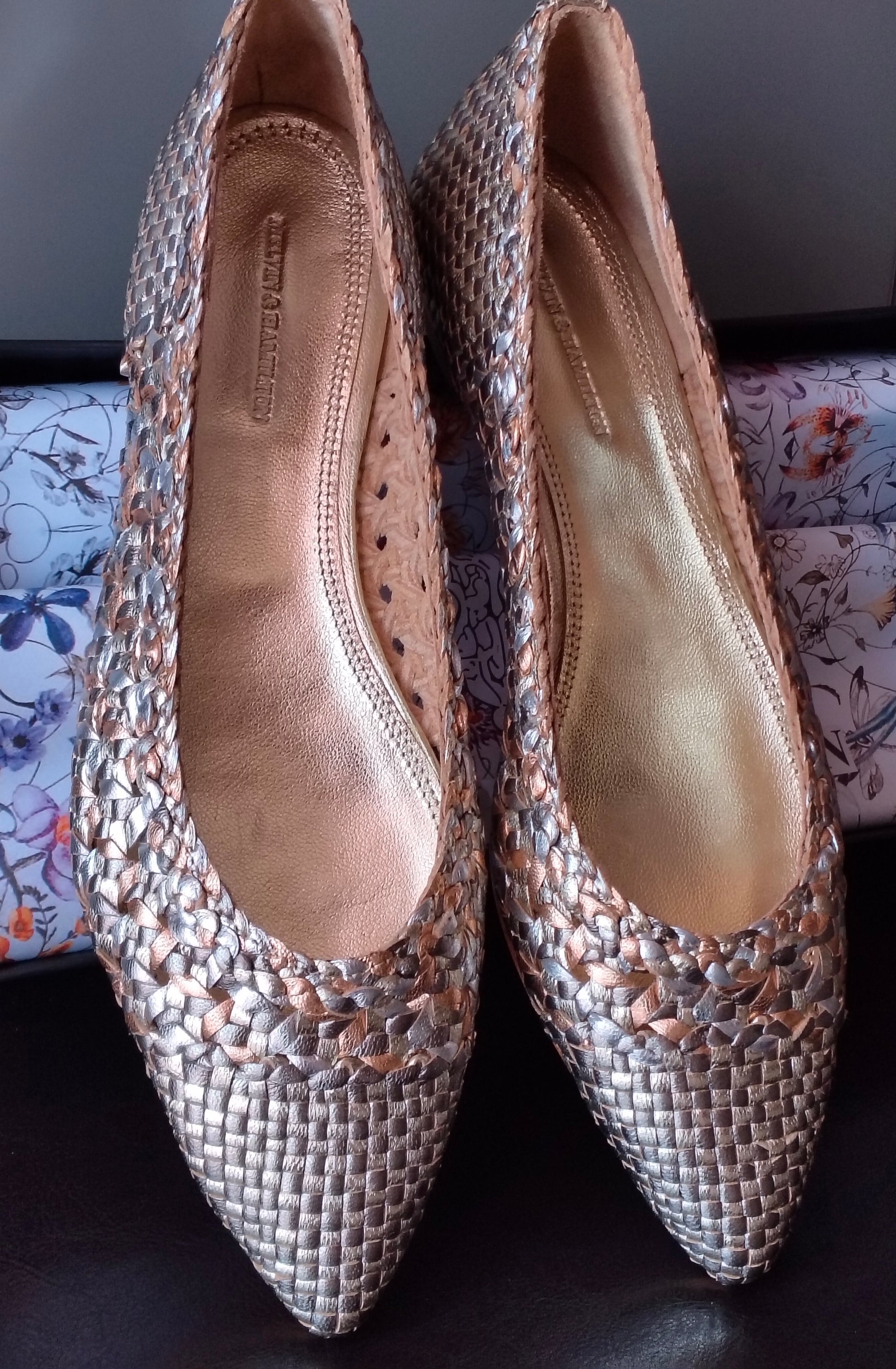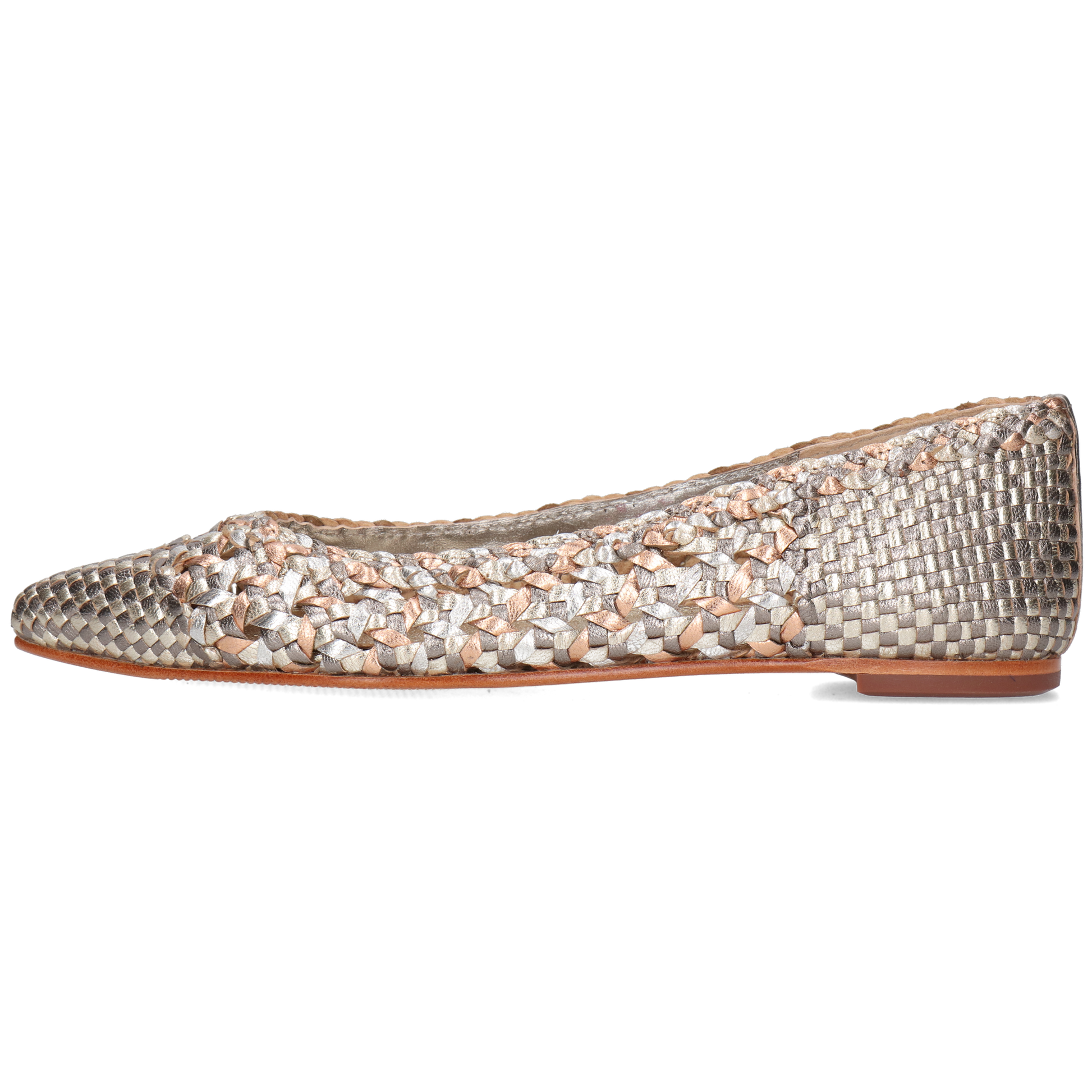Geflochtene Lederballerinas Modell Flora 2, Größe 39, Farbe Platinum/Silver/Rose Gold. Neu. Nie getragen. Komplett mit Schuhkarton und Dustbag.