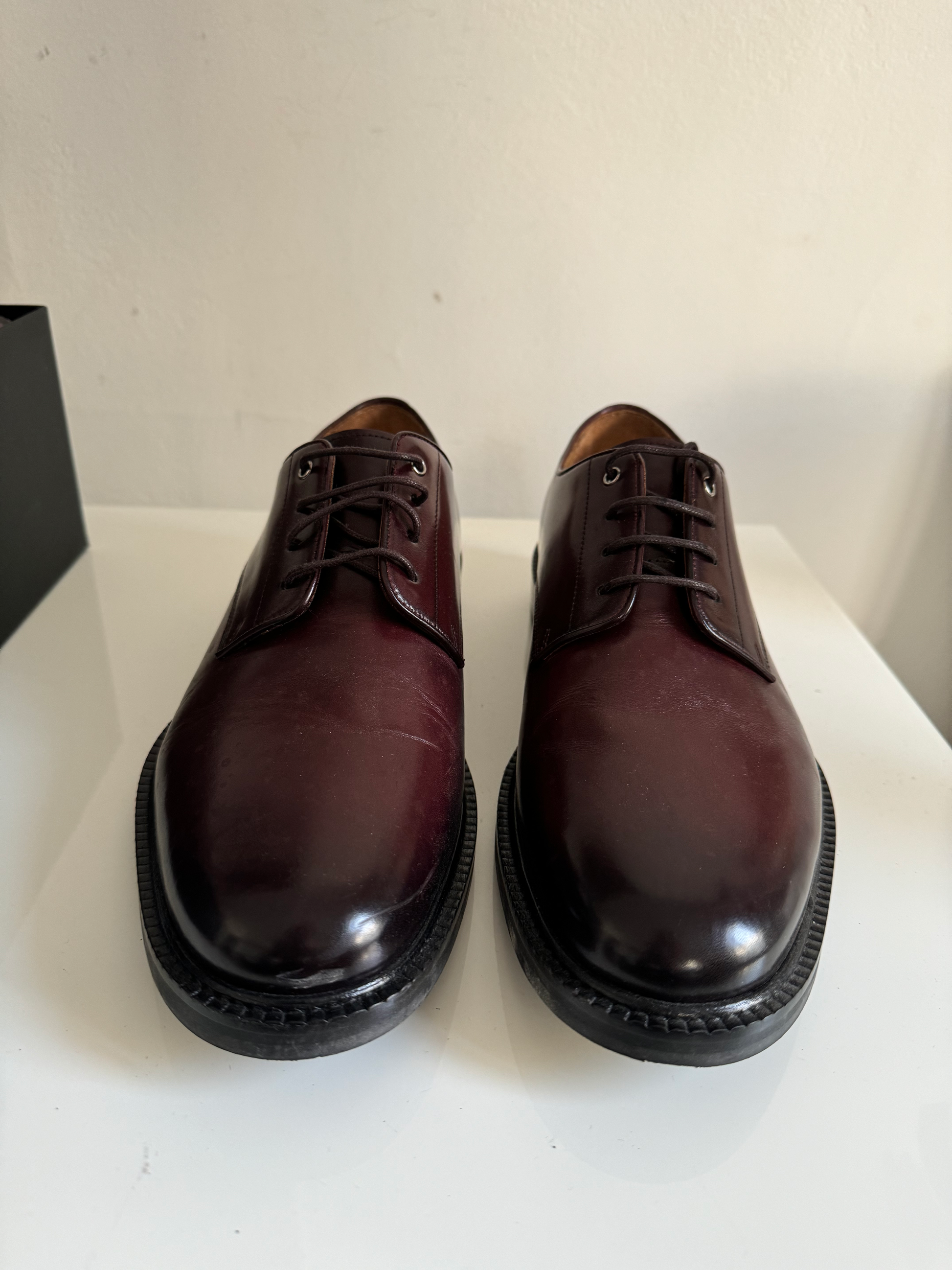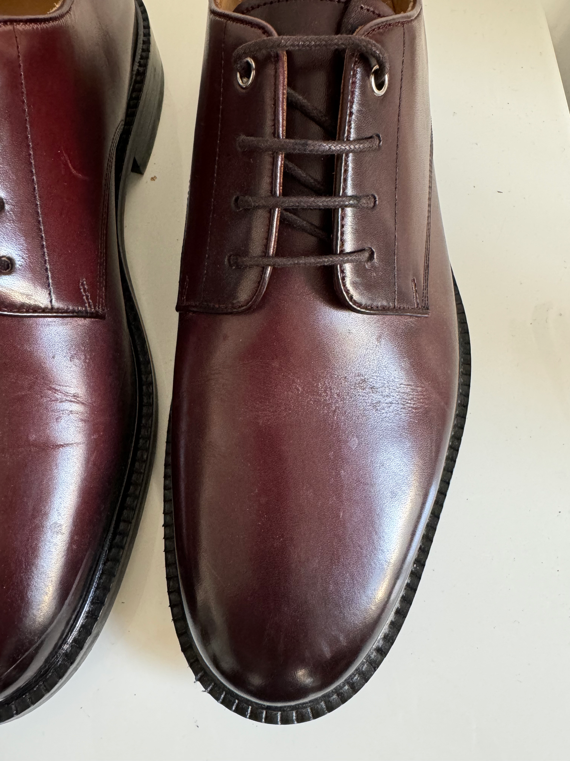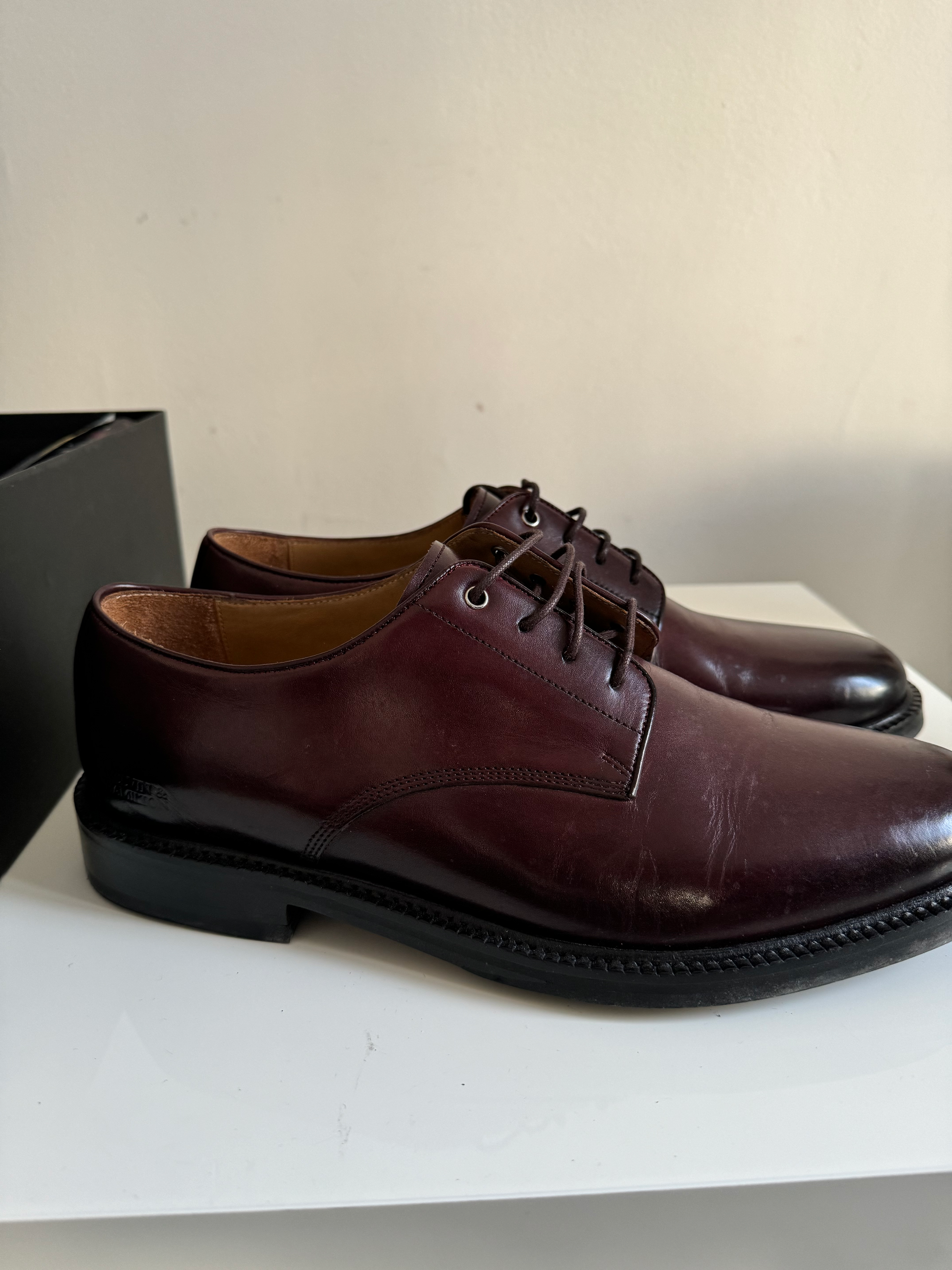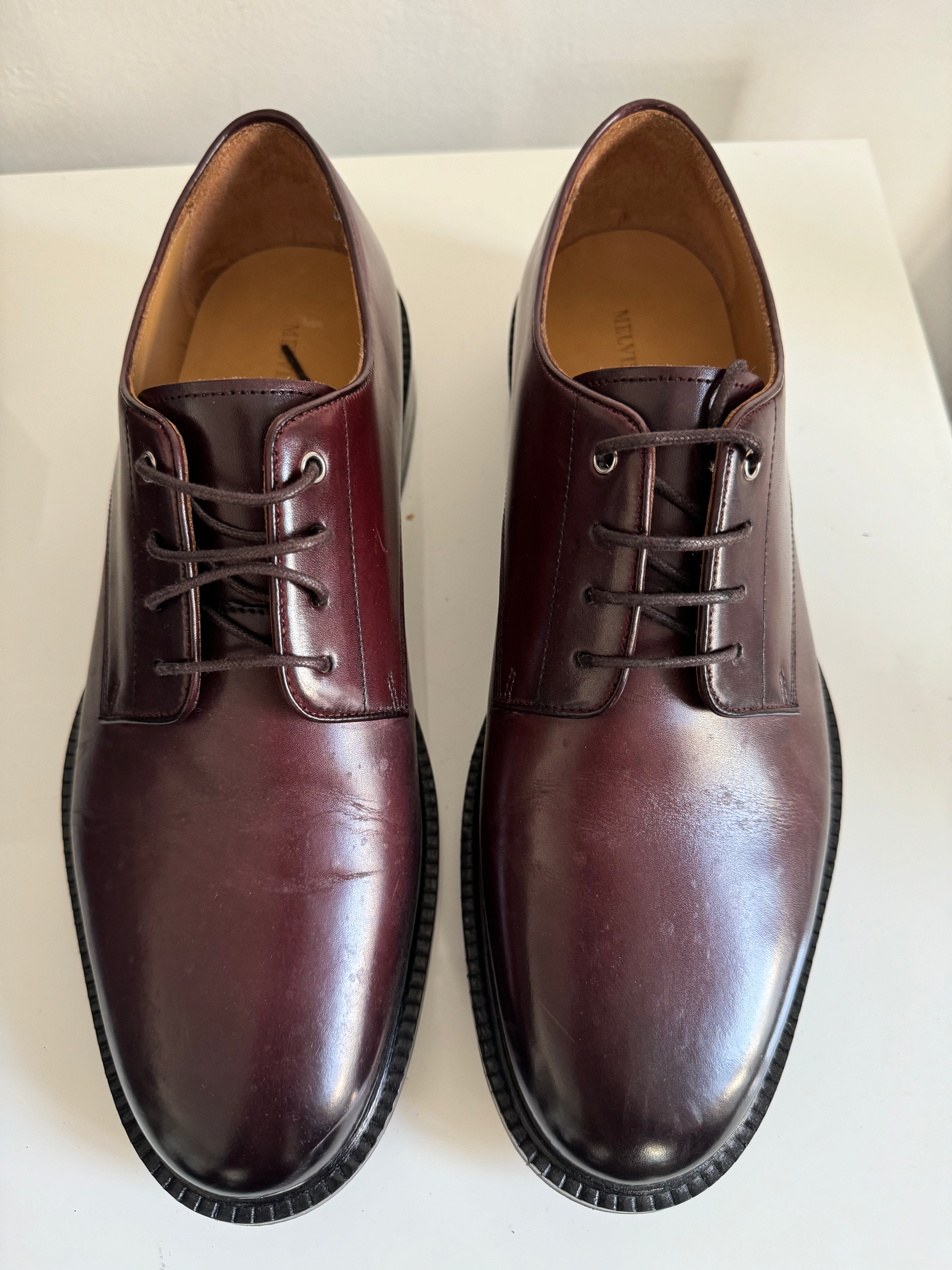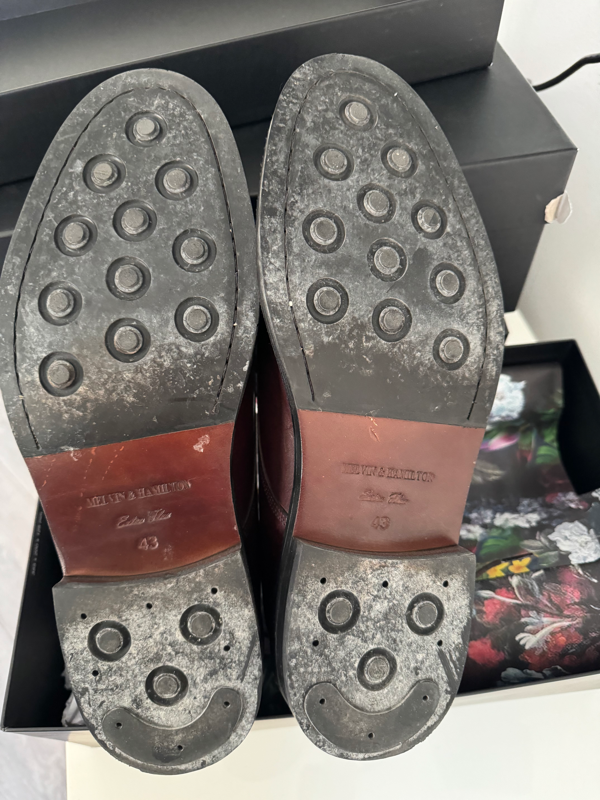 Stitches and creases on the leather and worn soles This product is sold by Melvin & Hamilton directly.