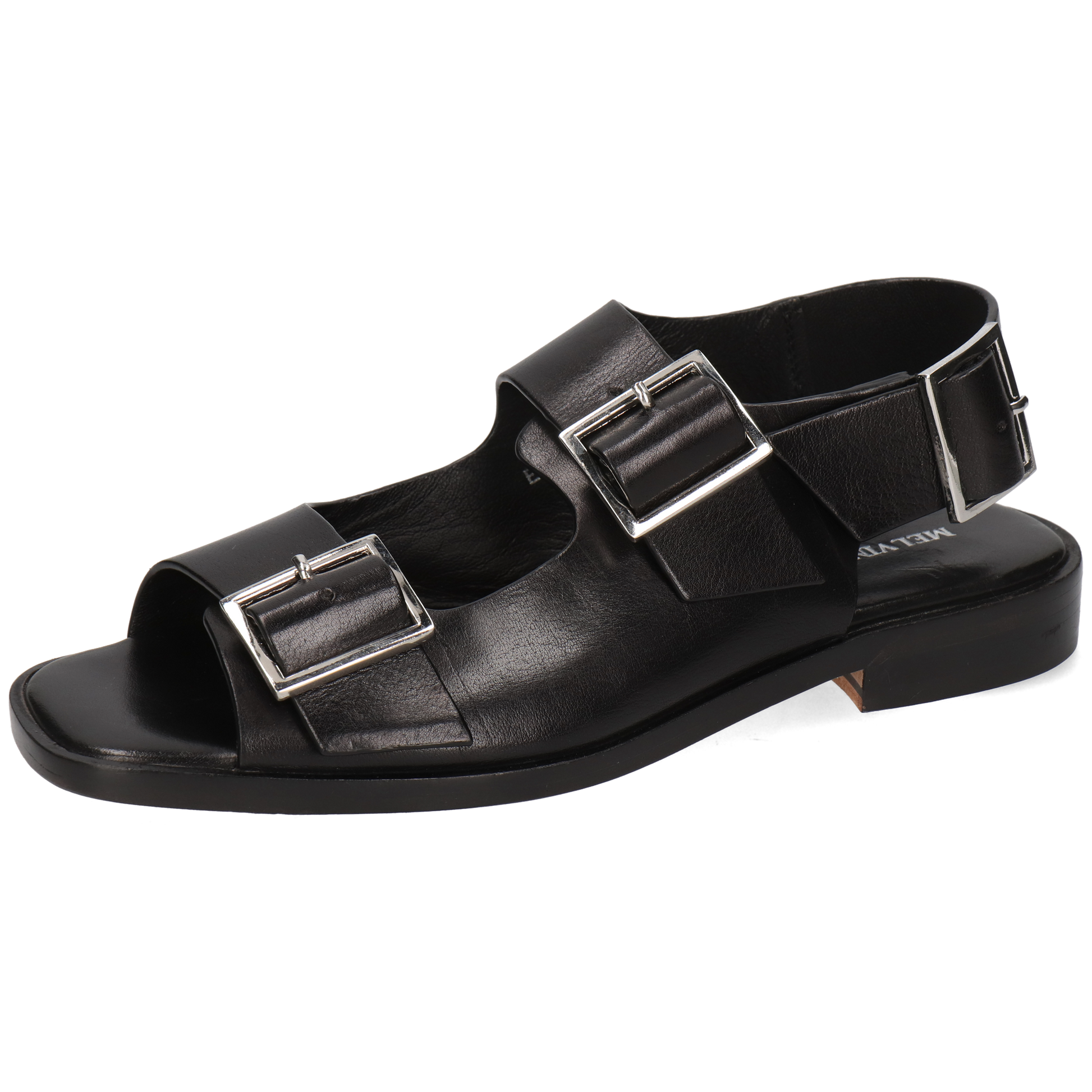 Melvin & Hamilton presents its spring/summer collection of women's sandals. Whether flat or wedge, sandals are a must-have in your summer shoe wardrobe. Here are the features of our Everly 5 leather model. Spending the whole day in comfortable open-toe sandals is what these flat-heeled black cowhide leather sandals promise! With their black leather sole and square toe design, you’ll soon find you can’t live without them.