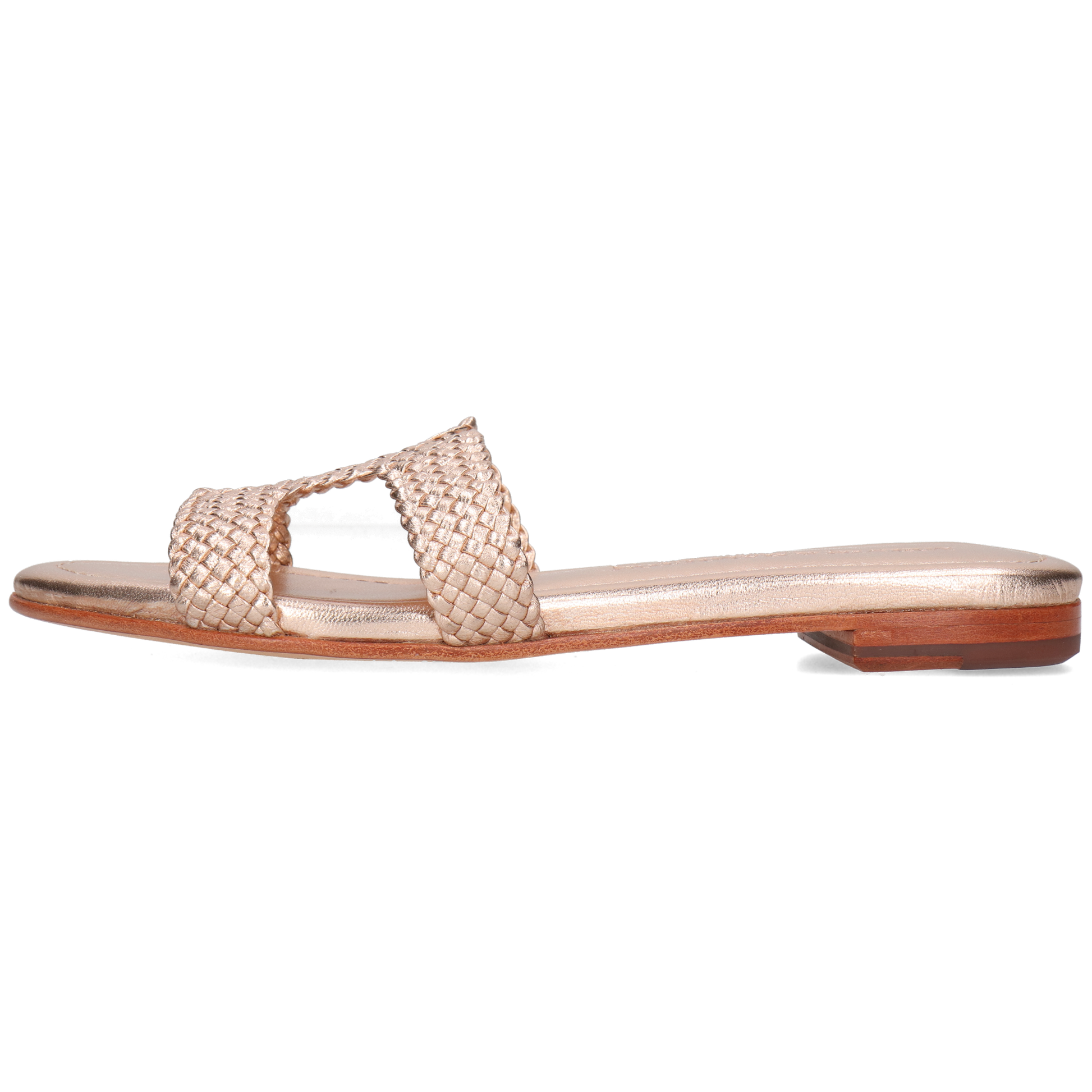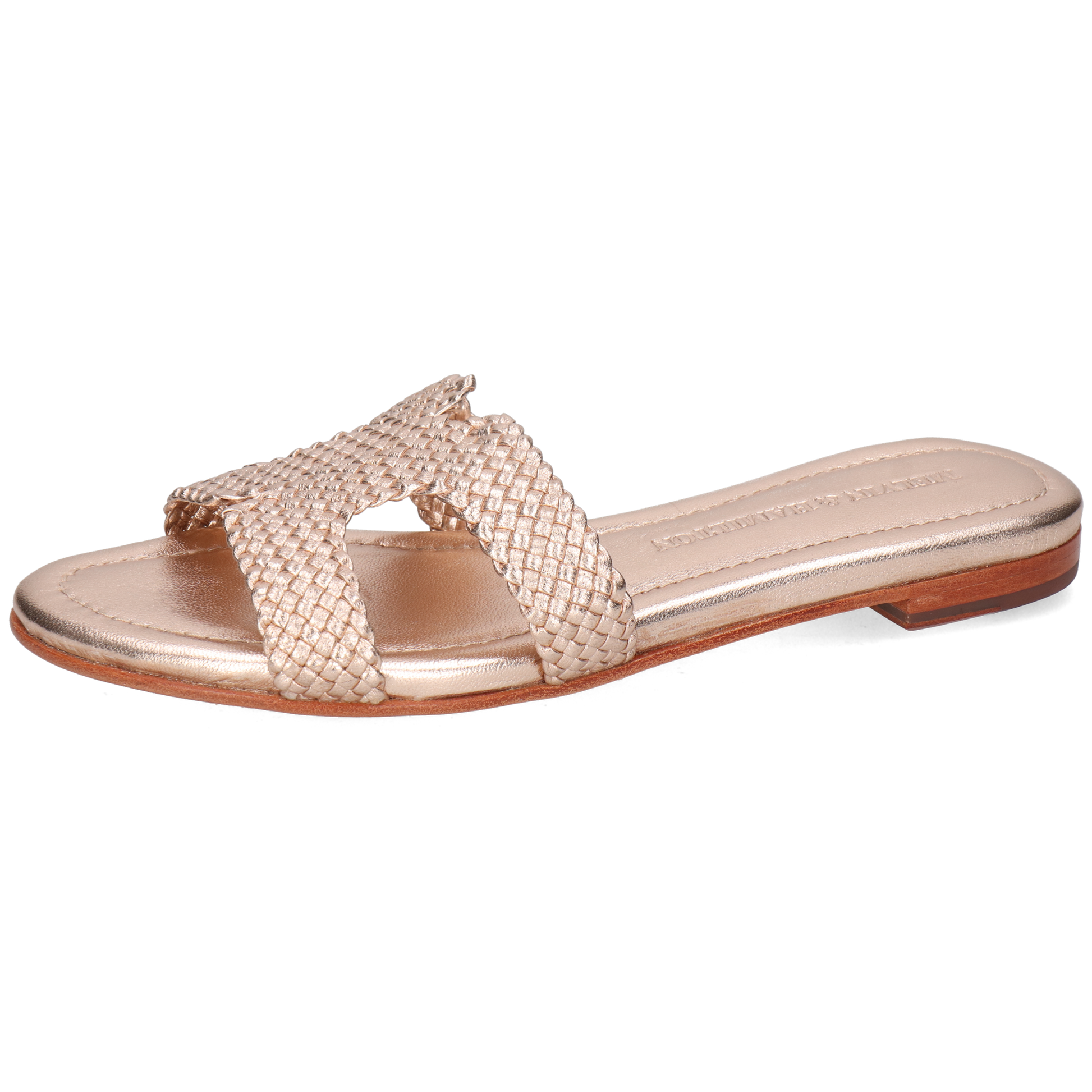 Melvin & Hamilton presents its spring/summer collection of women's mules. Available in open or closed toe versions, these elegant mules are a must-have for your wardrobe. Here are the features of our Hanna 83 leather model. The mule is an essential item for any fashionista, especially during the warm season! Even more so when its design is on-trend, like this flat-heeled pair in gold lamb leather. Fun, vibrant colors for summer, fashionable patterns—this round-toe model with its brown leather and rubber sole is the perfect way to stand out!