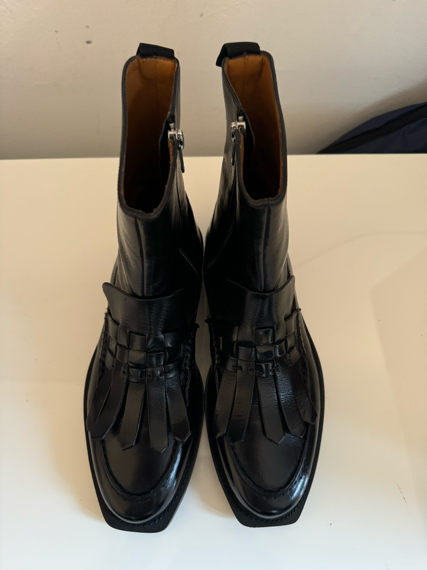 Our women's and men's collections are organized in families. These families correspond to a specific shoe shape (width, toe, finish): Amelie, Jessy, Selina… So, if you are comfortable in a Selina loafer in 38, you will be just as comfortable in a Selina boot or derby in 38 as well. To save yourself time if you are already our regular customer, you can check out the product families that you already have in your wardrobe.