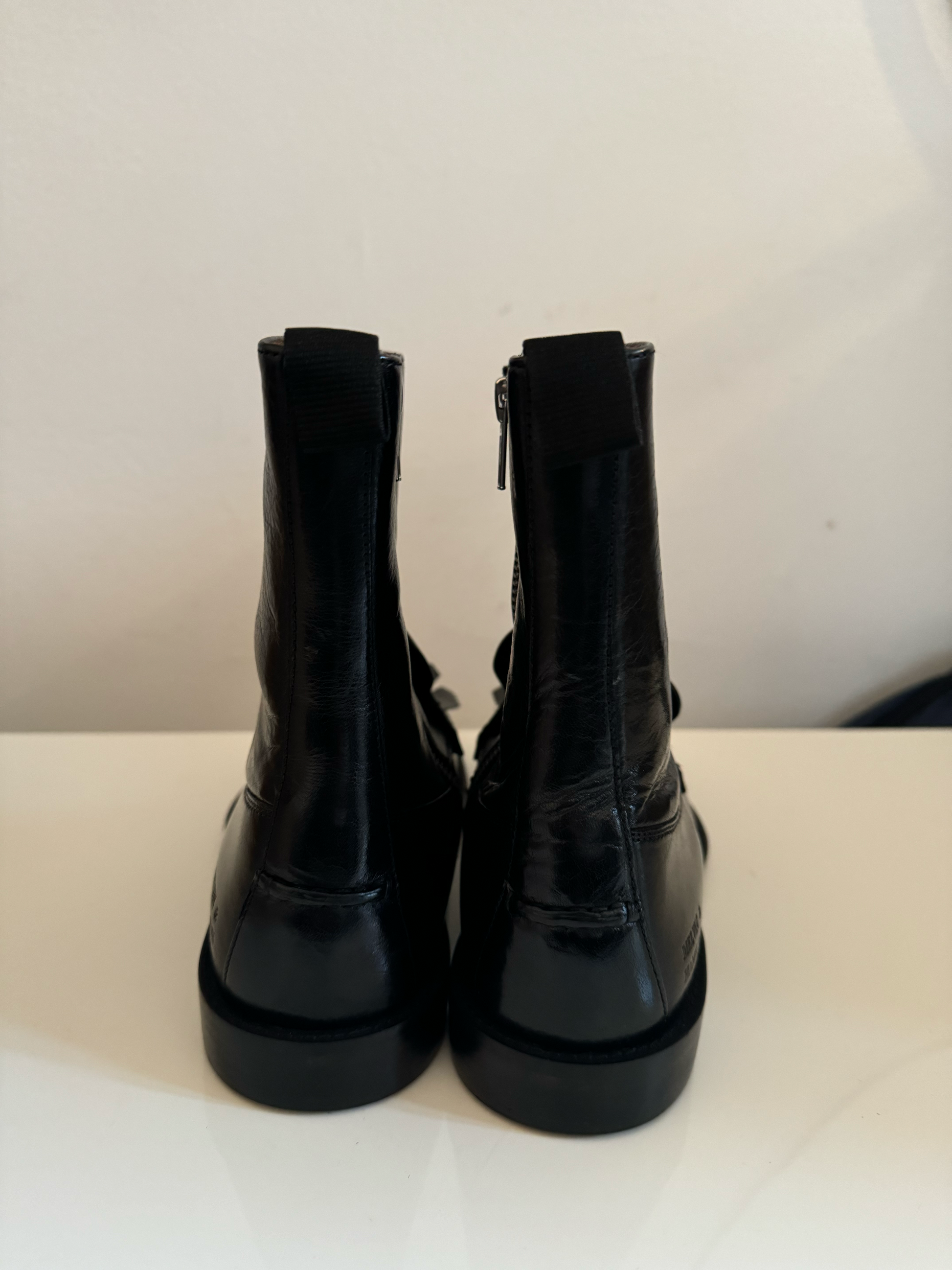 Melvin & Hamilton presents its fall/winter collection of women's ankle boots. The brand has poured all its leather craftsmanship into designing and creating exceptional boots, key models for the cold season. Here are the features of our Gianna 22 leather boots. This winter, add a splash of color to your life with this unique square-toe design in black cowhide leather! Featuring a leather and black rubber sole, warm and must-have colors this season, and fashionable patterns—this is the recipe behind Melvin & Hamilton’s trendy shoe range. Will you dare to wear these flat-heeled boots to stand out?