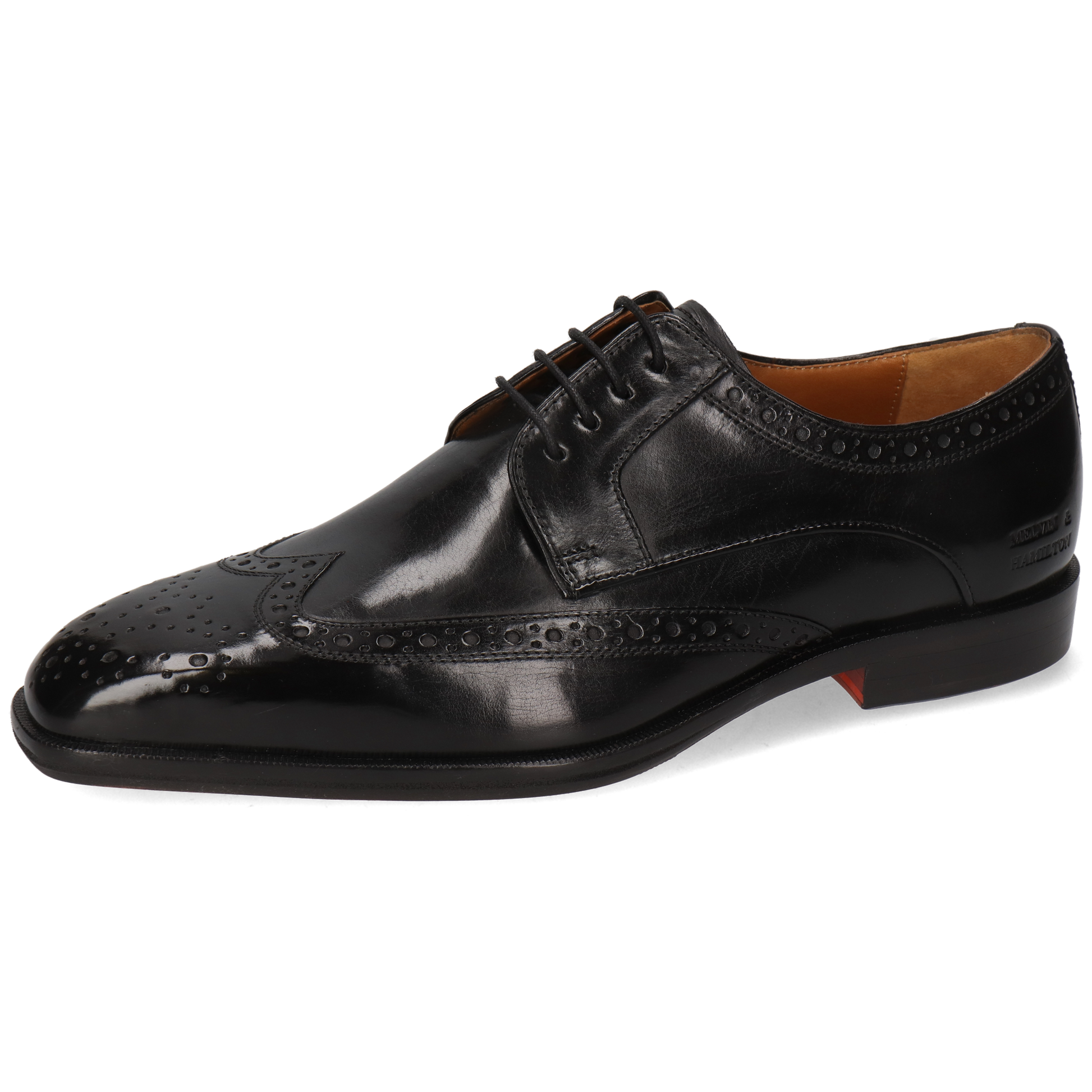 Fall in love with Melvin & Hamilton’s autumn-winter collection of leather derby shoes for men. These classic lace-up shoes complement any style and are a must-have in your wardrobe during the colder months when you want the comfort of a closed shoe. With the Stefano 4 model, you’re choosing quality! For a sleek and elegant business look with a winter touch, look no further. These black calf leather square-toe derbies are essential for a sharp business outfit. A true classic city shoe for a distinctive look, this derby with a leather and orange rubber sole will surely find its place in your collection.