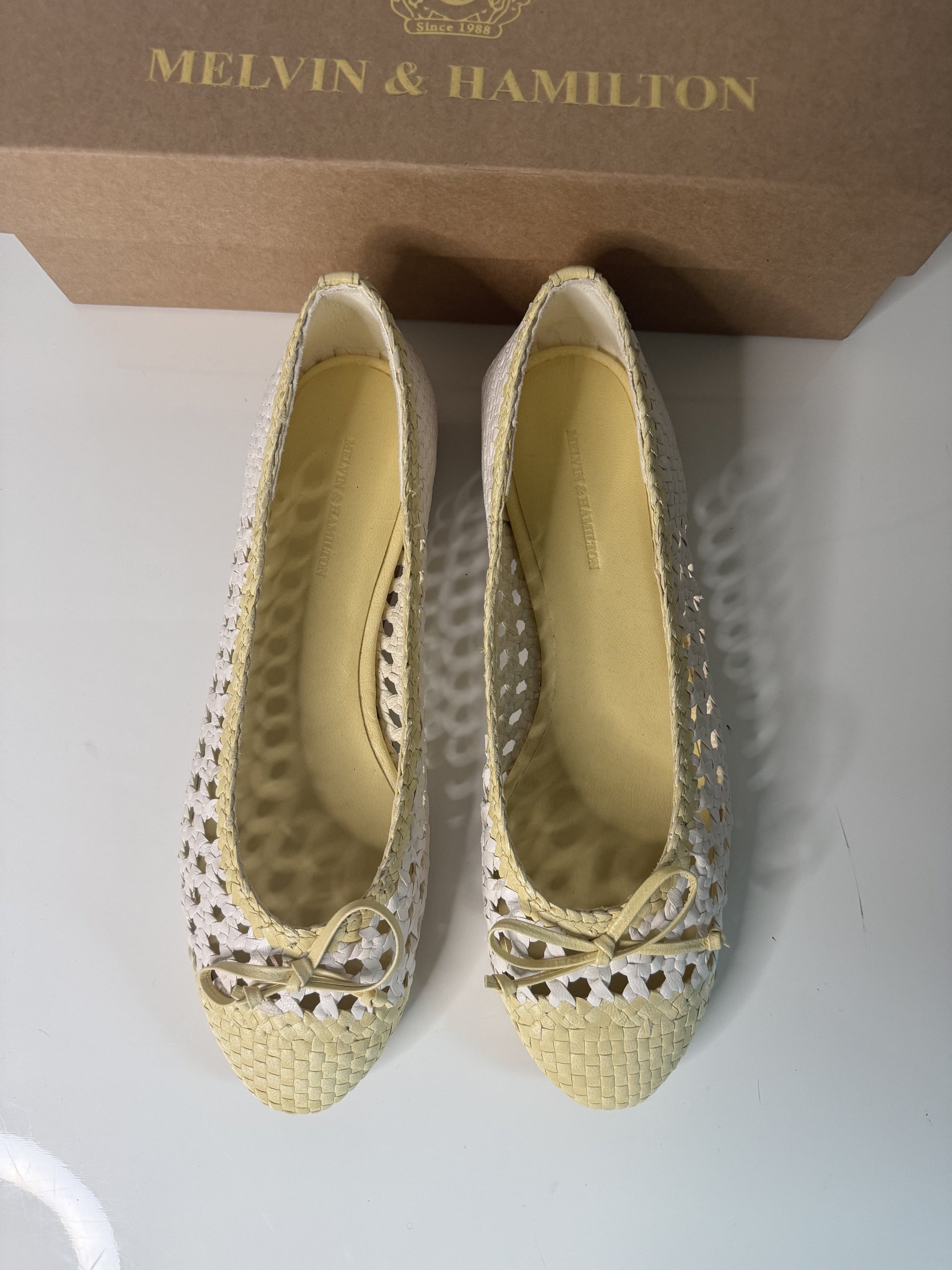 Melvin & Hamilton presents its spring/summer collection of women's ballerinas. Light and comfortable, ballerinas make their appearance as soon as the beautiful spring days arrive. Here are the features of our Imani 1 leather model. With original colors and trendy patterns, this is one of the signatures that make Melvin & Hamilton a unique brand! These white goat leather ballerinas are no exception, so if you want to stay elegant while standing out with your originality, don’t hesitate! Choose these women's round-toe ballerinas with their comfortable beige leather sole.