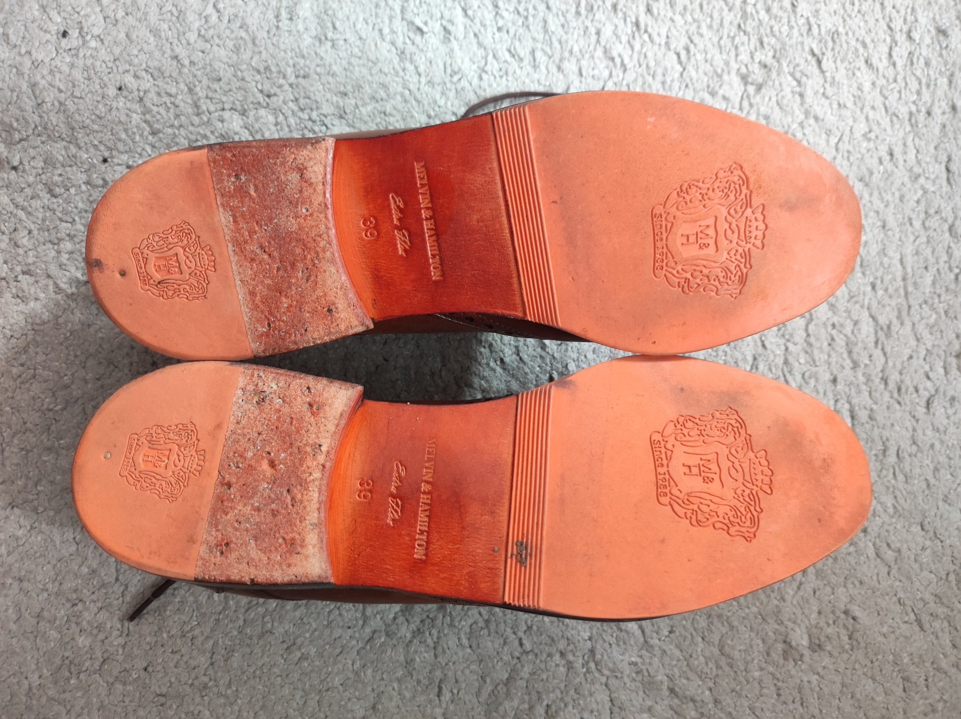 La chaussure est malheureusement trop grande pour moi, c'est pourquoi elle n'a été portée qu'une seule fois. Légères traces d'usure sur les talons.