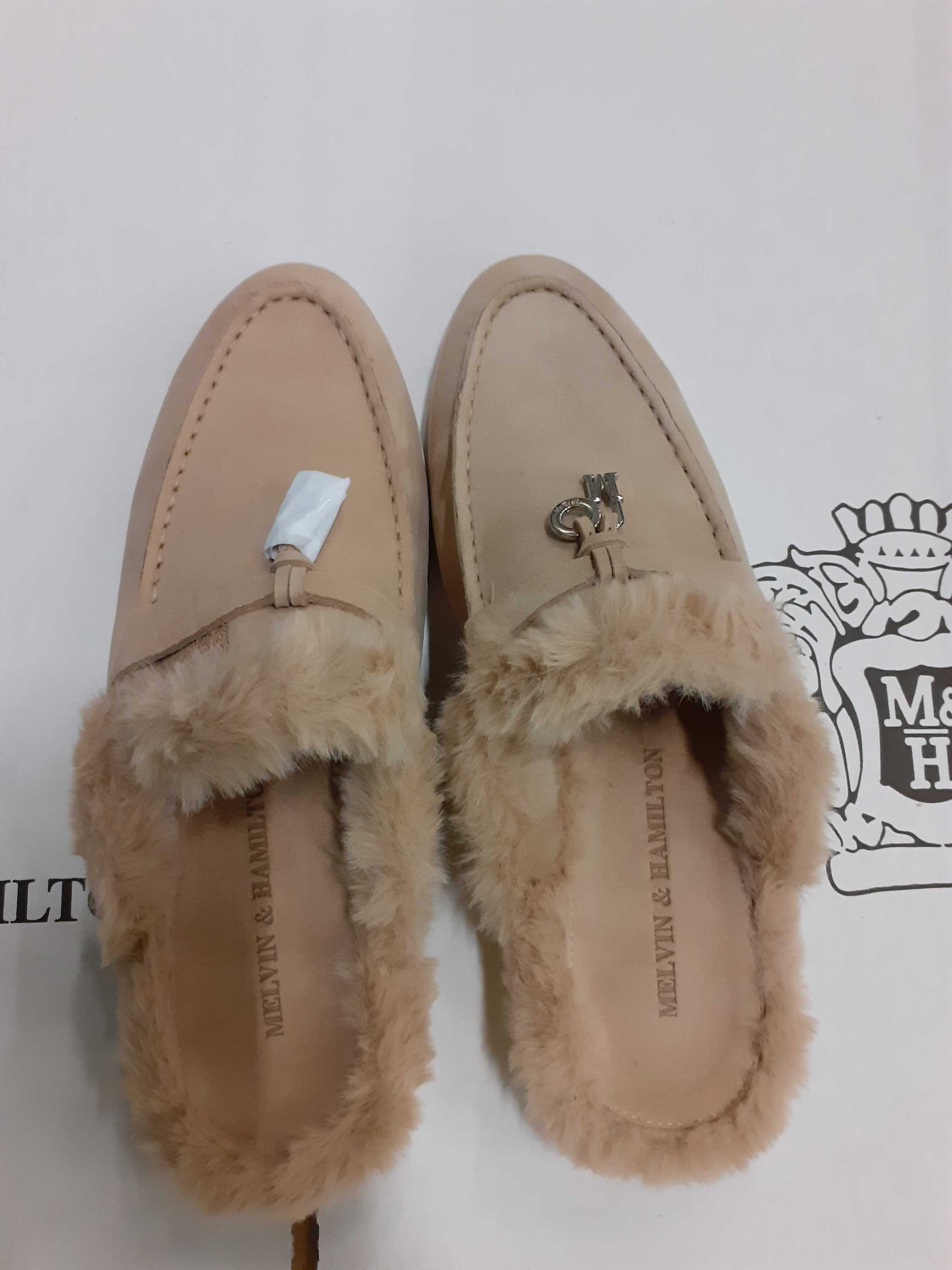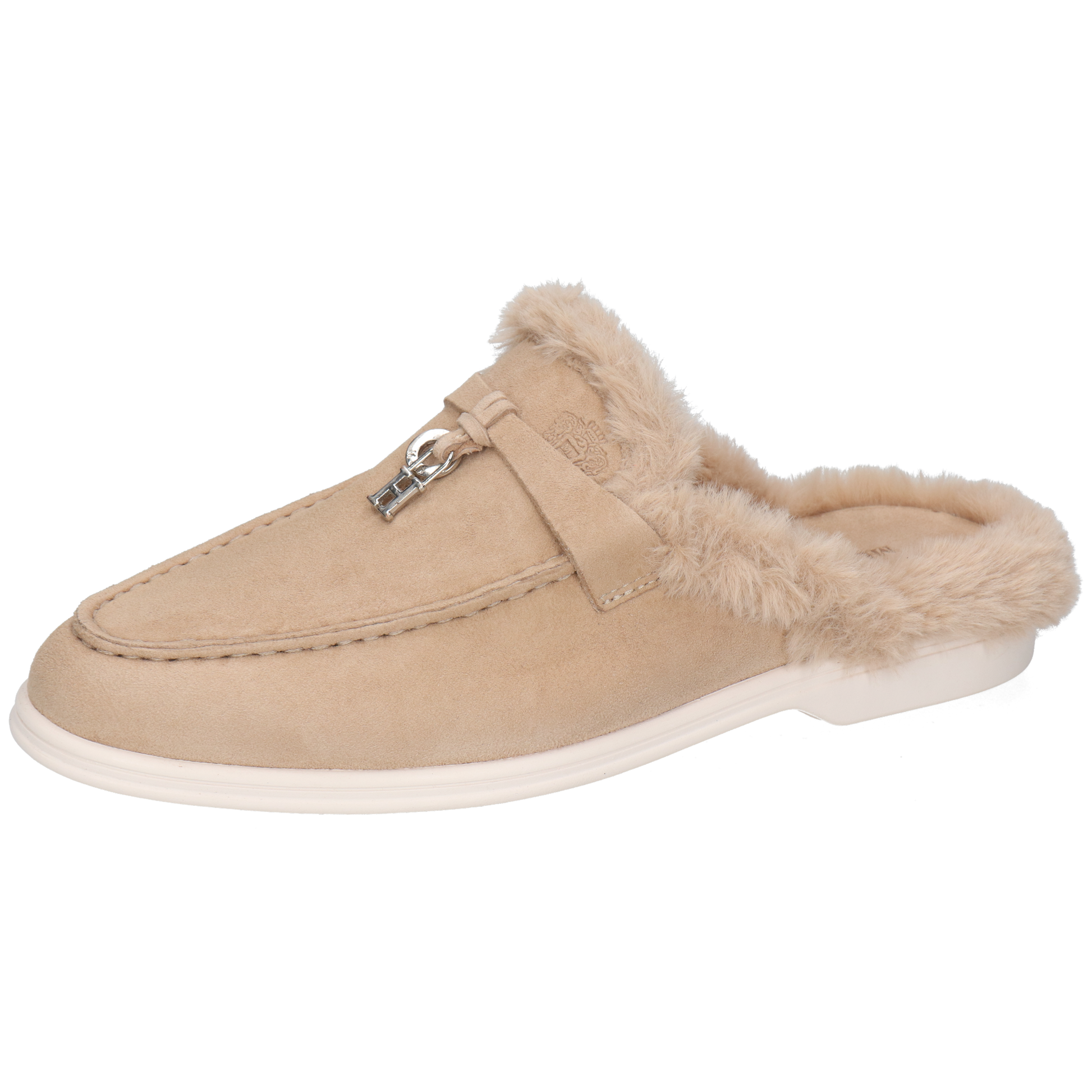 Ces mules confortables en cuir suédé beige souple sont le reflet de la collection Adley par Melvin & Hamilton, l'un de nos modèles les plus emblématiques et les plus appréciés. Avec leur design ouvert à l'arrière, leur style facile à enfiler et leurs semelles en gomme légère, ces mules Adley 15 sont dotés de mini breloques M&H décoratives. Avec leur doublure fausse fourrure douce, ces mules offrent à la fois un style affirmé et un confort douillet. Parfaites pour les promenades printanières, les journées au bureau ou les sorties citadines, elles allient l'élégance à l'aisance tout au long de la journée.