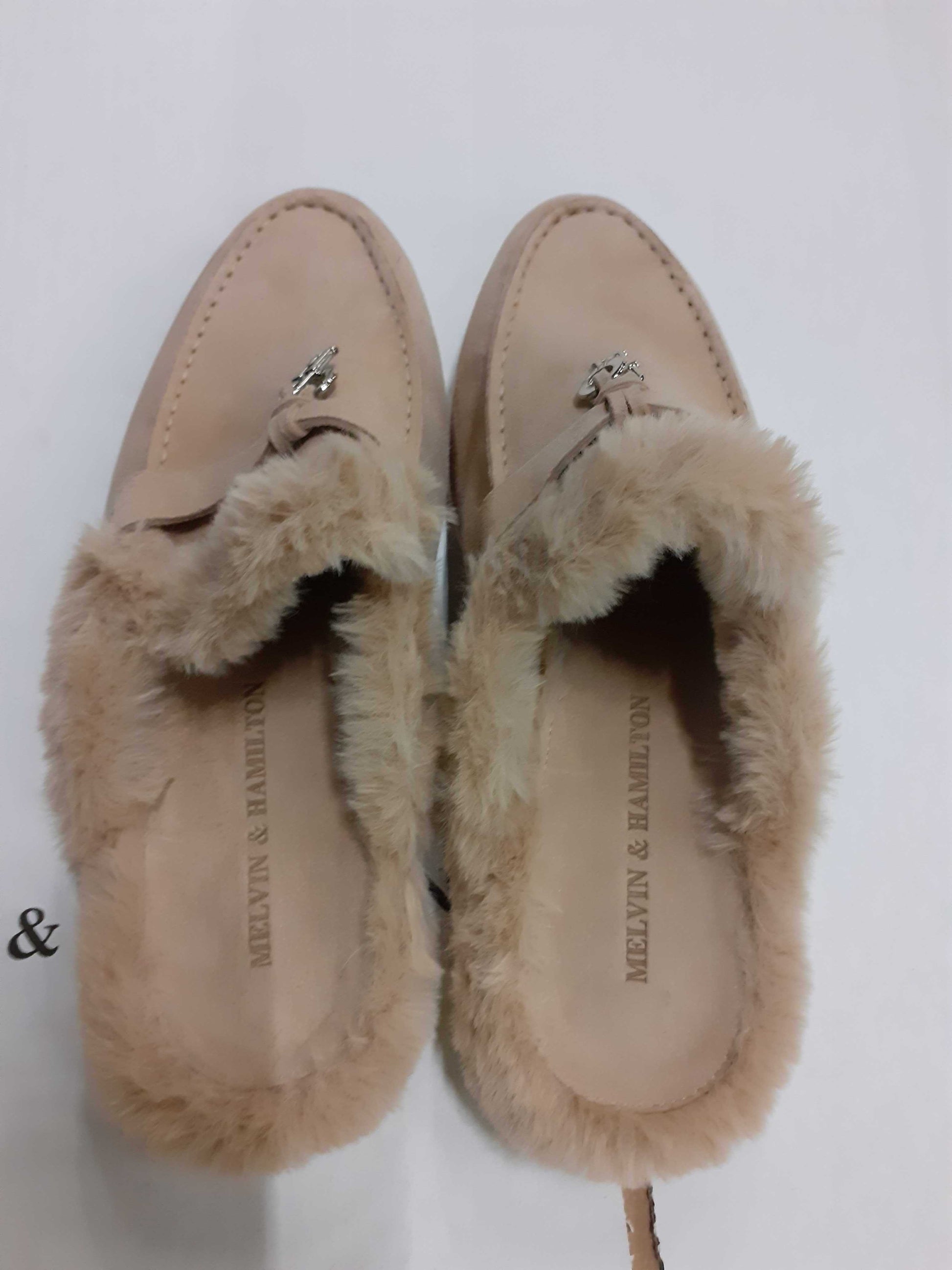 Ces mules confortables en cuir suédé beige souple sont le reflet de la collection Adley par Melvin & Hamilton, l'un de nos modèles les plus emblématiques et les plus appréciés. Avec leur design ouvert à l'arrière, leur style facile à enfiler et leurs semelles en gomme légère, ces mules Adley 15 sont dotés de mini breloques M&H décoratives. Avec leur doublure fausse fourrure douce, ces mules offrent à la fois un style affirmé et un confort douillet. Parfaites pour les promenades printanières, les journées au bureau ou les sorties citadines, elles allient l'élégance à l'aisance tout au long de la journée.