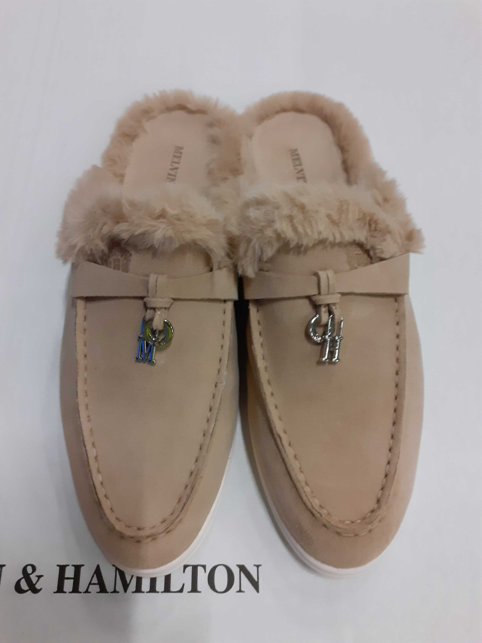 Ces mules confortables en cuir suédé beige souple sont le reflet de la collection Adley par Melvin & Hamilton, l'un de nos modèles les plus emblématiques et les plus appréciés. Avec leur design ouvert à l'arrière, leur style facile à enfiler et leurs semelles en gomme légère, ces mules Adley 15 sont dotés de mini breloques M&H décoratives. Avec leur doublure fausse fourrure douce, ces mules offrent à la fois un style affirmé et un confort douillet. Parfaites pour les promenades printanières, les journées au bureau ou les sorties citadines, elles allient l'élégance à l'aisance tout au long de la journée.