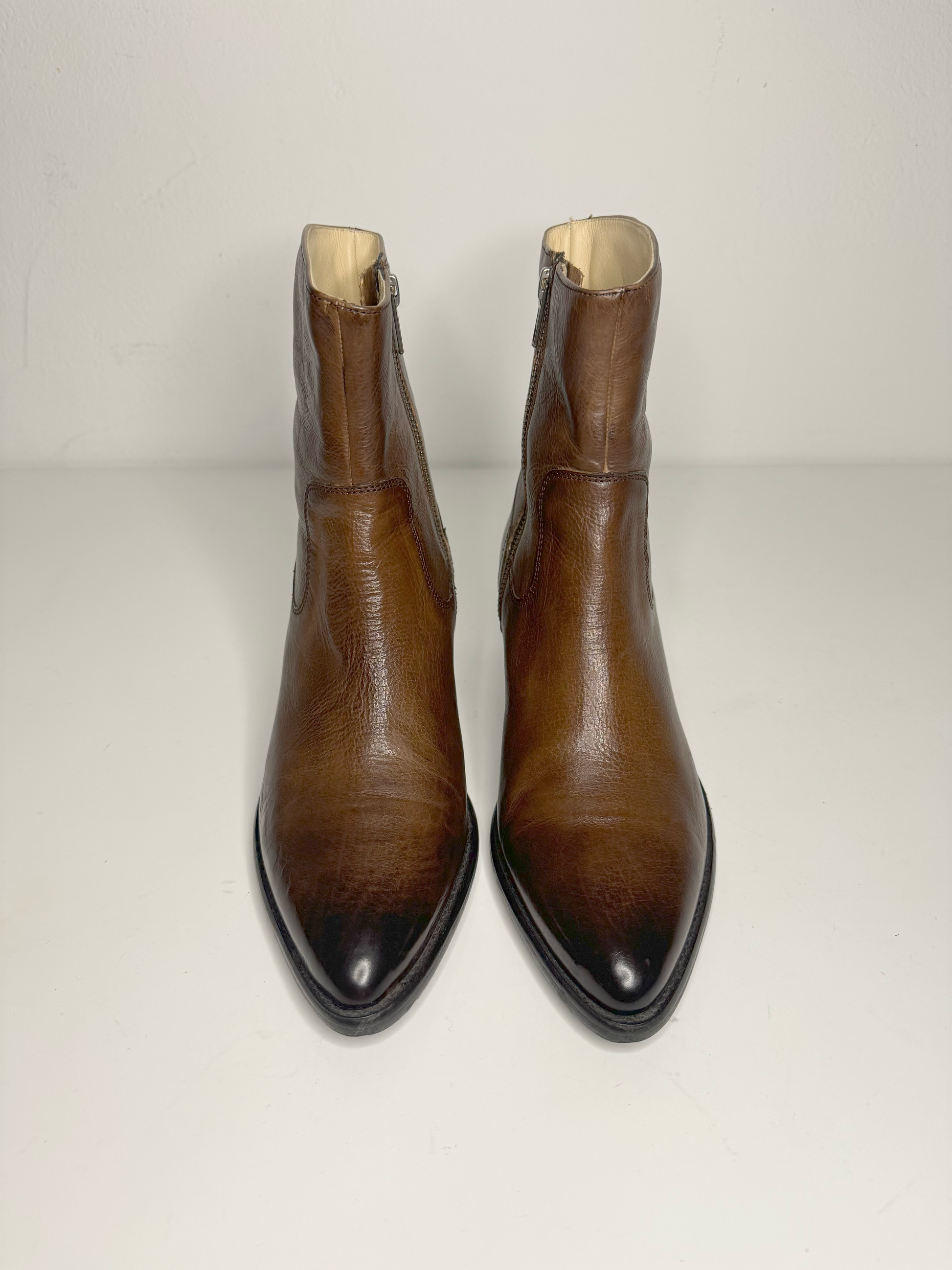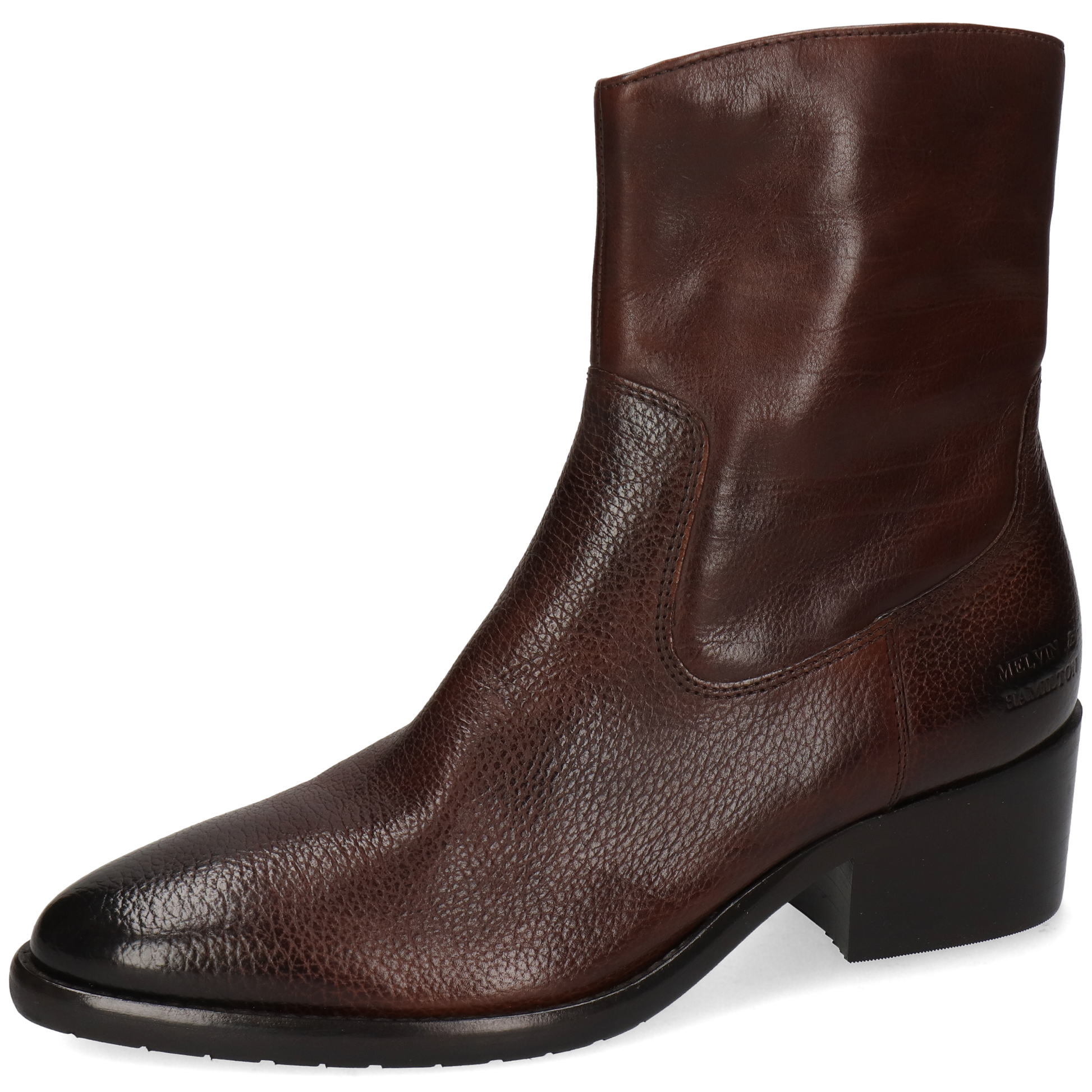 Melvin & Hamilton présente sa collection automne/hiver de bottines pour femme. La marque a mis tout son savoir-faire du travail du cuir dans la conception et la fabrication de bottines d'exception, modèles phares de la saison froide. Voici les caractéristiques de notre modèle de boots en cuir Bridie 2. Cet hiver, mettez de la couleur dans votre vie avec ce modèle à bout pointu en cuir de veau tannage végétal marron très original ! Une semelle en gomme noir, des couleurs chaleureuses et incontournables cette saison, des motifs fashion, telle est la recette de la gamme de chaussures tendances par Melvin & Hamilton. Oserez-vous porter ces bottines à talon bottier pour vous démarquer ?