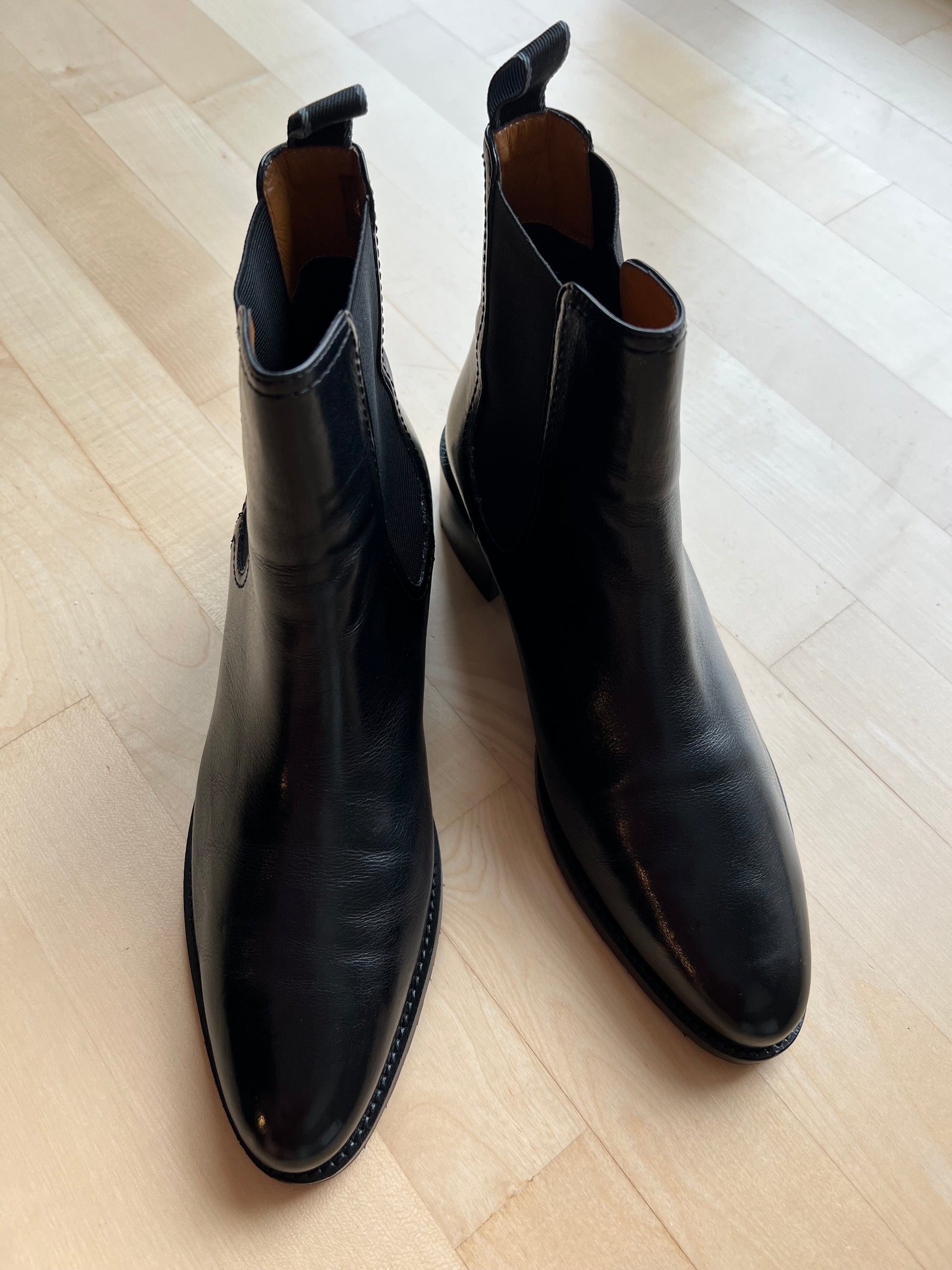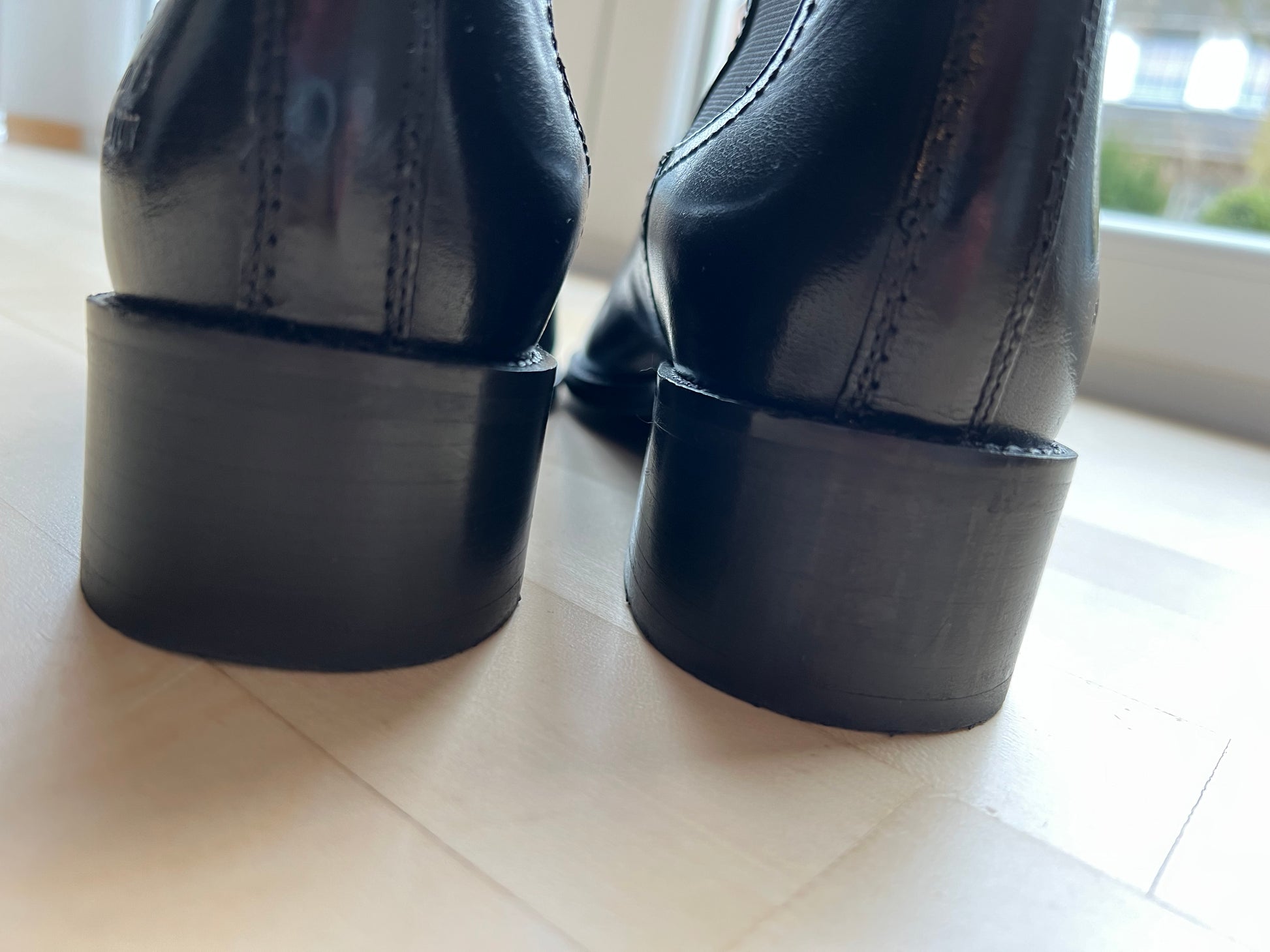 Les chaussures ont été portées une seule fois, malheureusement achetées trop grandes ! Sous le crochet, il reste des traces d’un autocollant apposé par l’entreprise avant l’expédition. Il ne s’agit ni de saleté ni de chewing-gum !