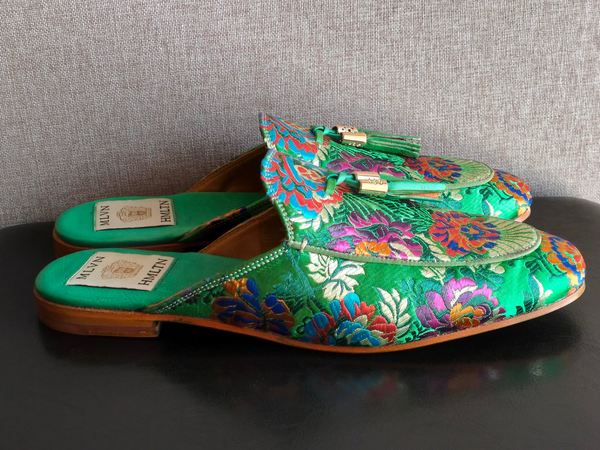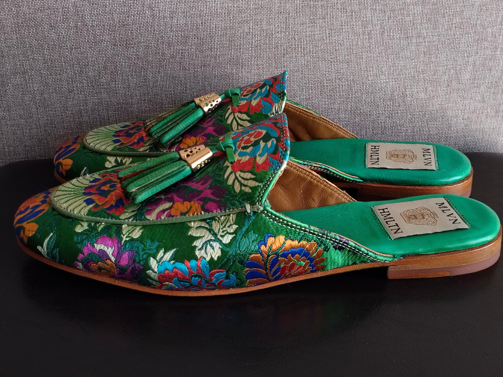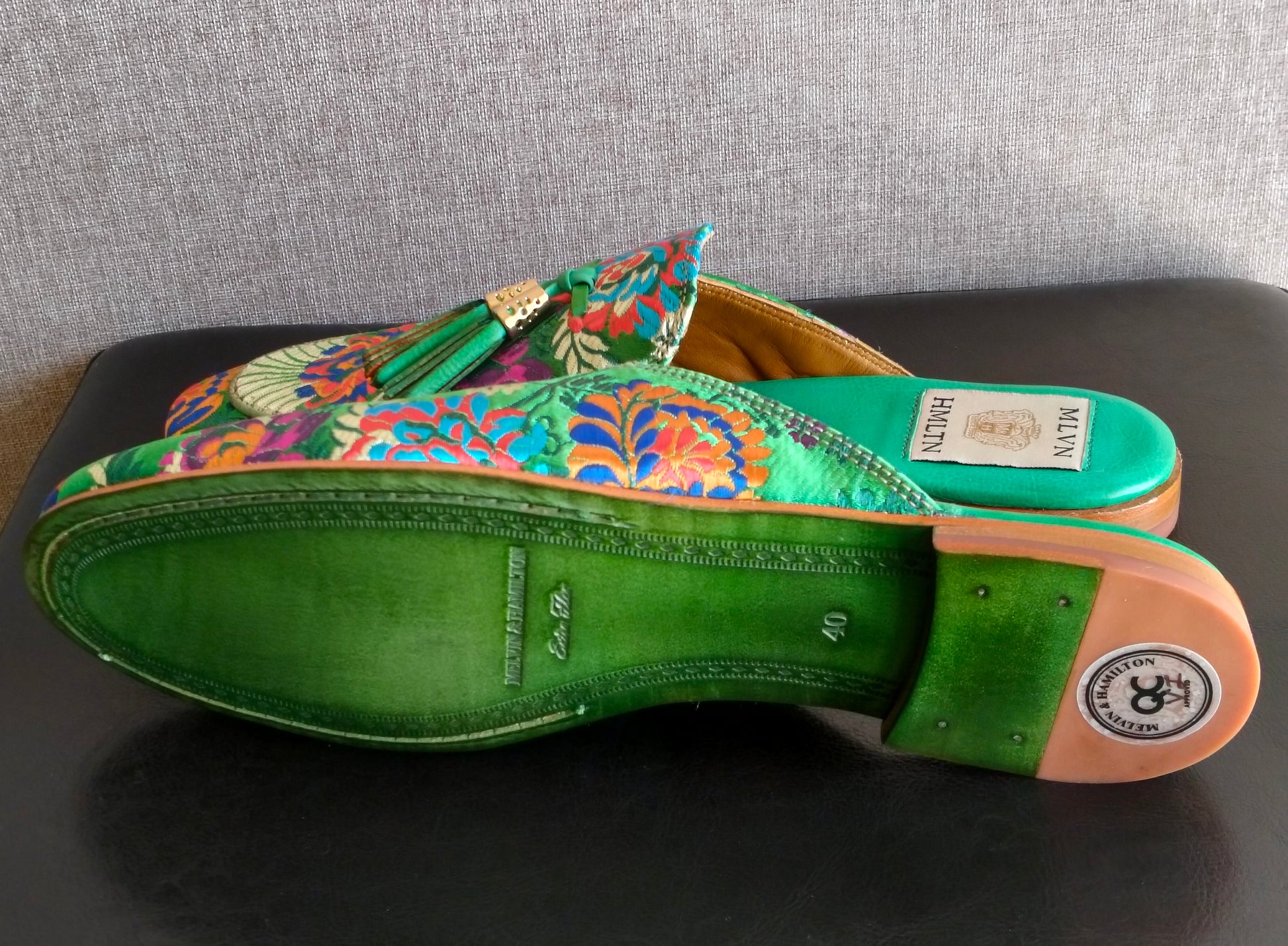 Ciabattine Melvin & Hamilton, taille 40, modèle Scarlett 2 avec un charmant broderie florale. Neuves, jamais portées. L’étiquette est encore collée sous la semelle. Livrées avec une housse de protection et dans leur boîte d’origine. À noter une légère tache de couleur à peine visible.