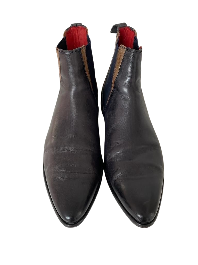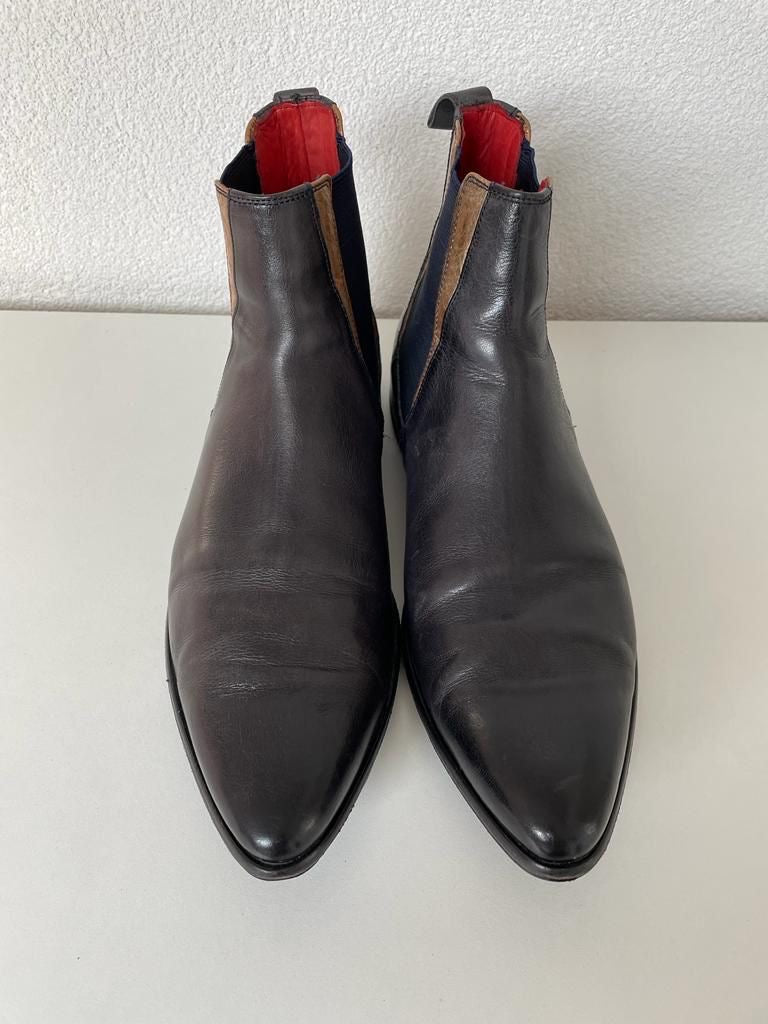 Je vends mes bottes préférées car je n'ai plus l'occasion de les porter. Les chaussures font du 43 et je les ai portées environ 15 fois. La couleur est bleu marine et l'intérieur de la semelle est rouge diable. Pour que la semelle d'origine ne soit pas endommagée, j'ai fait faire une semelle supplémentaire. En très bon état.