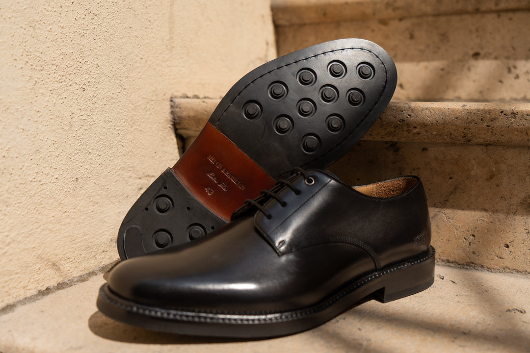 Craquez pour la collection automne-hiver de derbies en cuir pour homme par Melvin & Hamilton. Chaussures à lacets à la forme classique, elles s'accordent avec tous les styles et sont un élément incontournable à avoir dans sa garde-robe en automne et en hiver, lorsque l'on recherche le confort d'une chaussure fermée. Avec ce modèle Winston 1, vous faites le choix de la qualité ! Pour une tenue d'affaires sobre et élégante au style hivernal, n'hésitez plus ! Ces derbies à bout rond en cuir de vachette noir sont l'élément indispensable d'un look business. Chaussure de ville classique par excellence pour un look unique, cette derby à la semelle en cuir & gomme noir trouvera forcément sa place dans votre dressing.